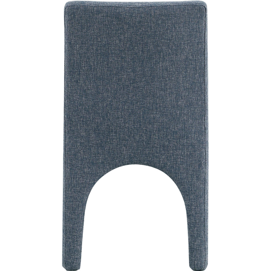 Transform your dining area into an elegant space with the Benson linen-textured fabric dining chairs, which come in a set of two. These chairs are upholstered with a plush blue fabric that has a subtle white weave, giving your dining room a refined and sophisticated look. The chairs feature a sturdy iron arched inner frame that ensures long-lasting durability and stability. With their art deco design, they add a touch of glamour to your dining space. Whether you're having a casual meal with family or a formal occasion with guests, these beautiful chairs are perfect for enhancing the ambiance of your dining area with style and comfort.