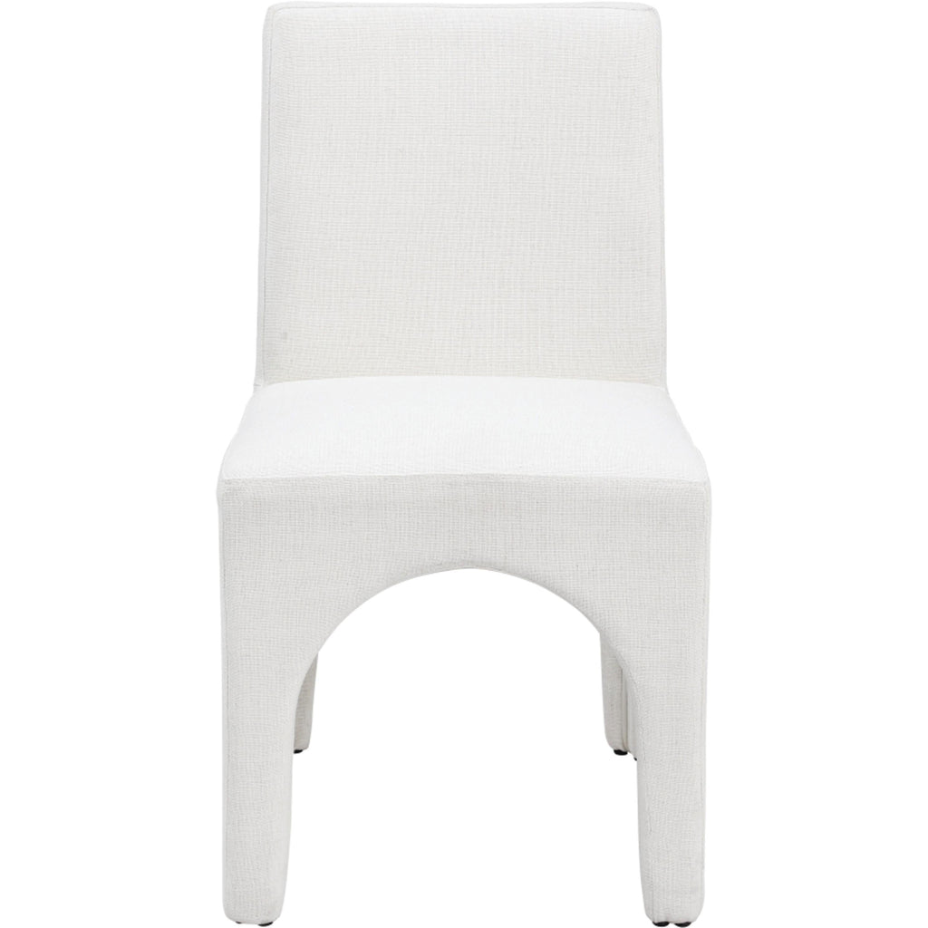 Transform your dining area into an elegant space with the Benson linen-textured fabric dining chairs, which come in a set of two. These chairs are upholstered with a plush cream fabric that has a subtle white weave, giving your dining room a refined and sophisticated look. The chairs feature a sturdy iron arched inner frame that ensures long-lasting durability and stability. With their art deco design, they add a touch of glamour to your dining space. Whether you're having a casual meal with family or a formal occasion with guests, these beautiful chairs are perfect for enhancing the ambiance of your dining area with style and comfort.