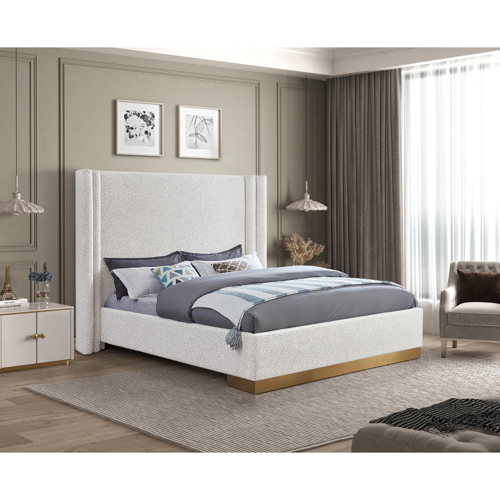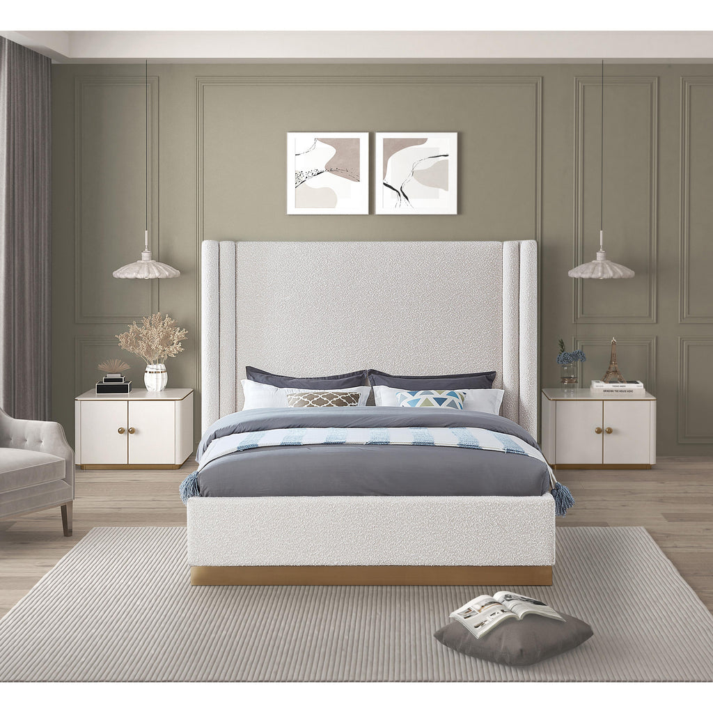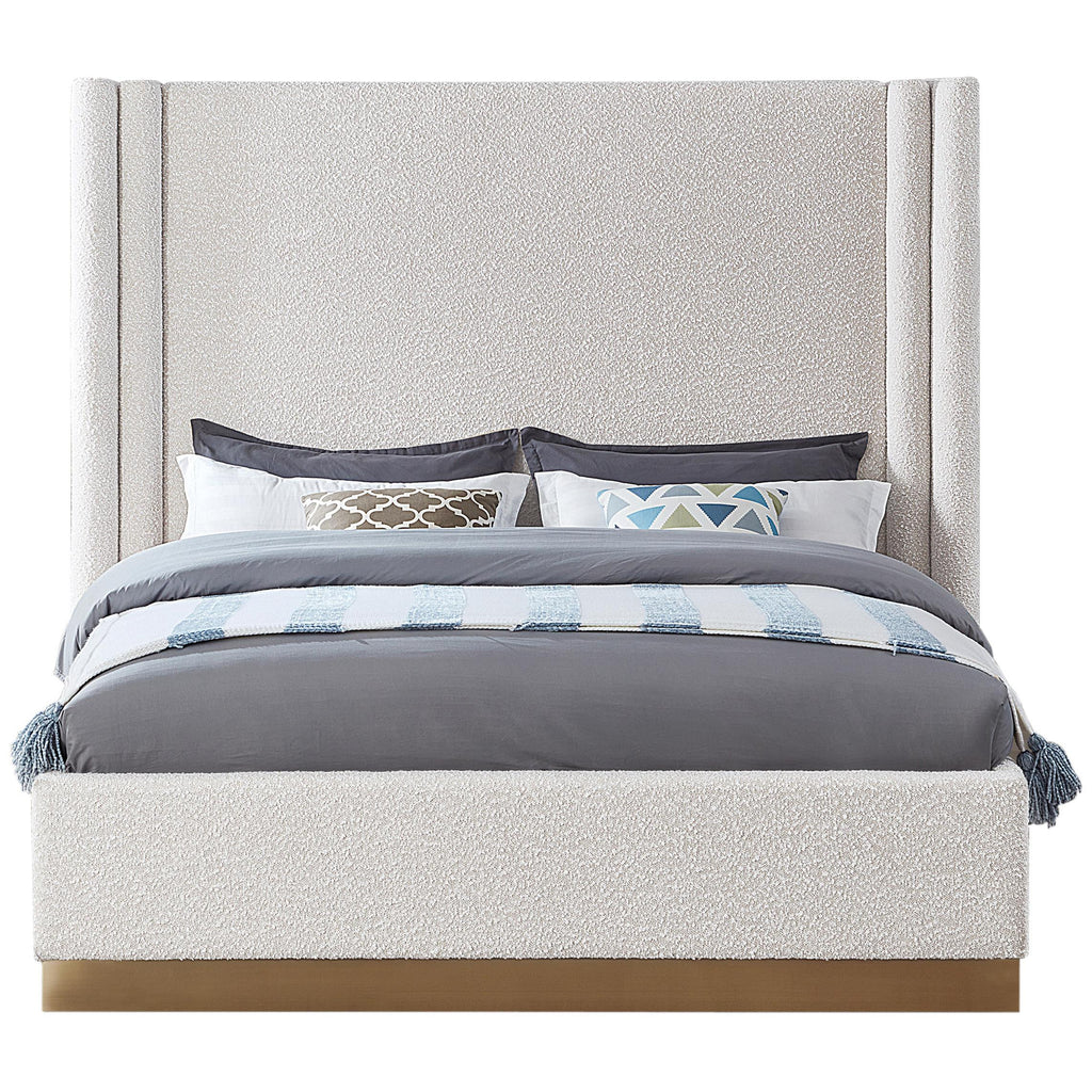 Settle in like royalty each night when you make this Halton boucle fabric bed yours. This eye-grabbing bed is destined to become the centerpiece of your bedroom sanctuary with its rich cream boucle fabric upholstery covering every square inch of its super-tall headboard and sides. This bed features a sturdy frame, so you can count on it weathering the sands of time and being a beautiful part of your bedroom for years to come.