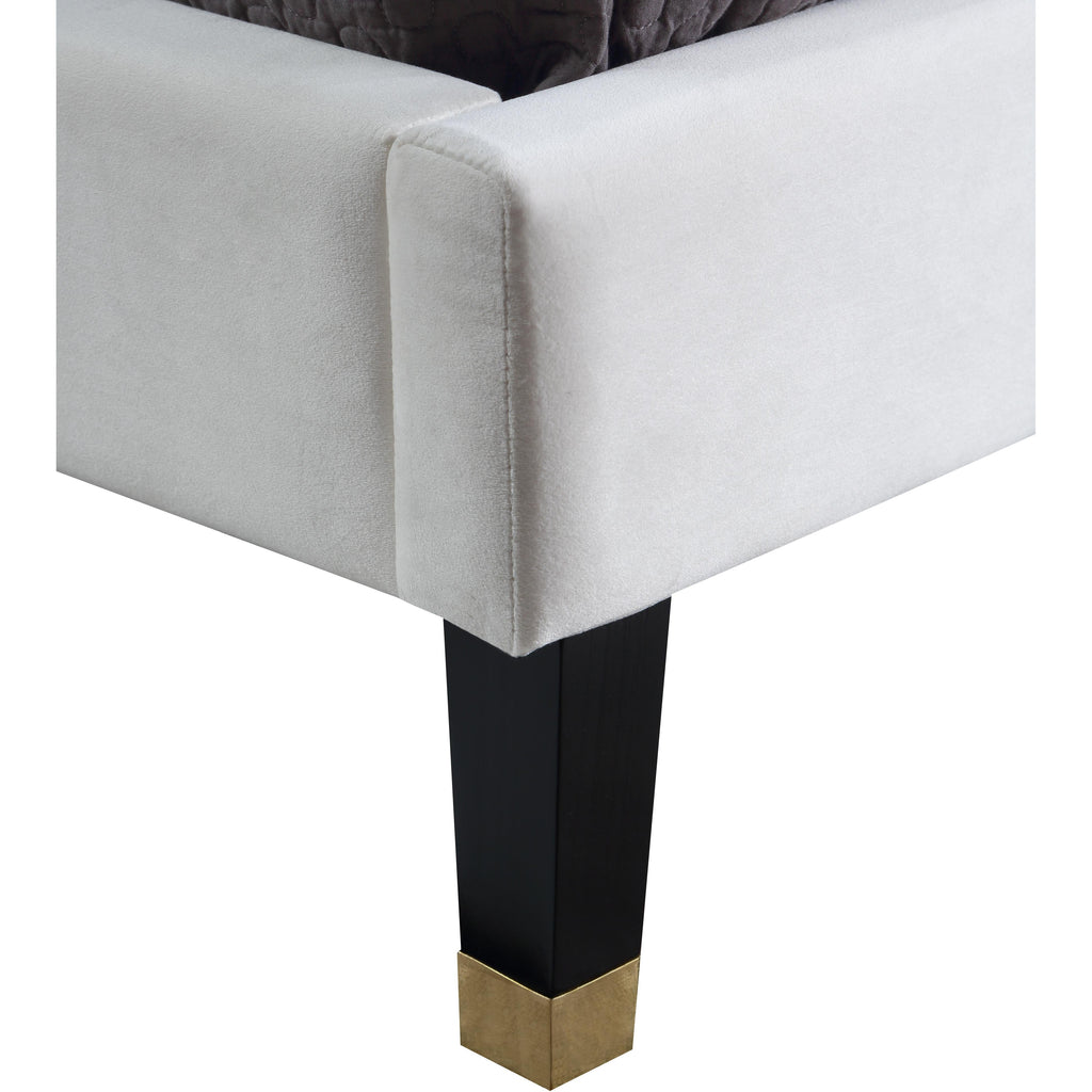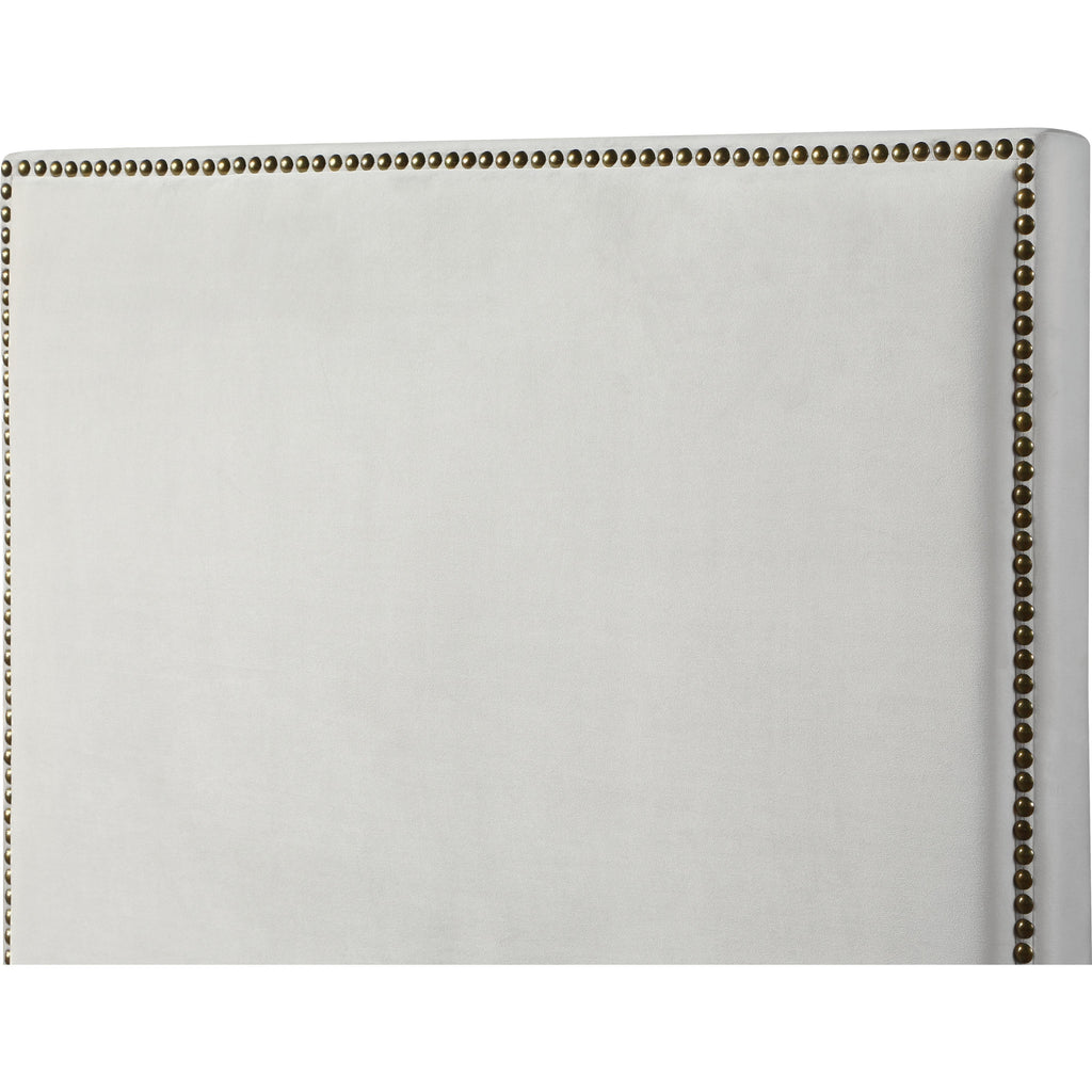 Give your room an instant boost of drama and style when you add this Harlie bed to the mix. This queen-size bed features a soft cream velvet exterior that's both chic and sleekand just the thing to add modern beauty to your decor. Brass nailheads lend this magnificently crafted bed an elegant vibe, while brass caps on the leg amplify its sophisticated demeanor. An extra-tall design makes sure this Harlie bed gets the bulk of attention in your bedroom.