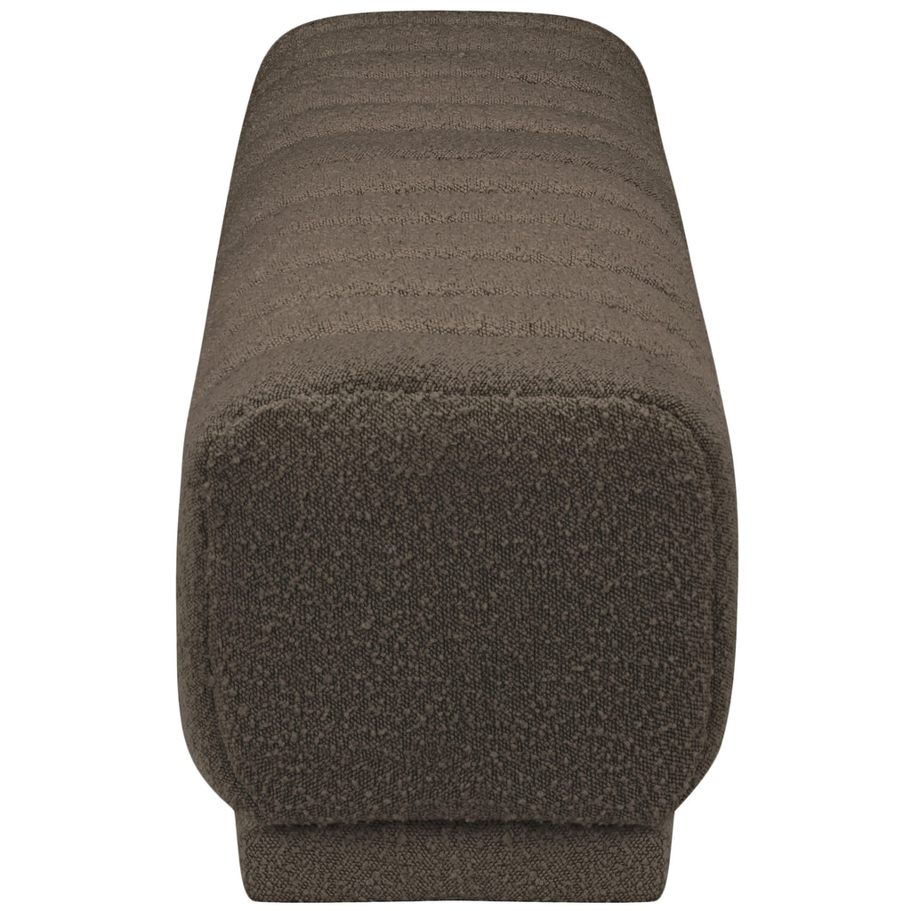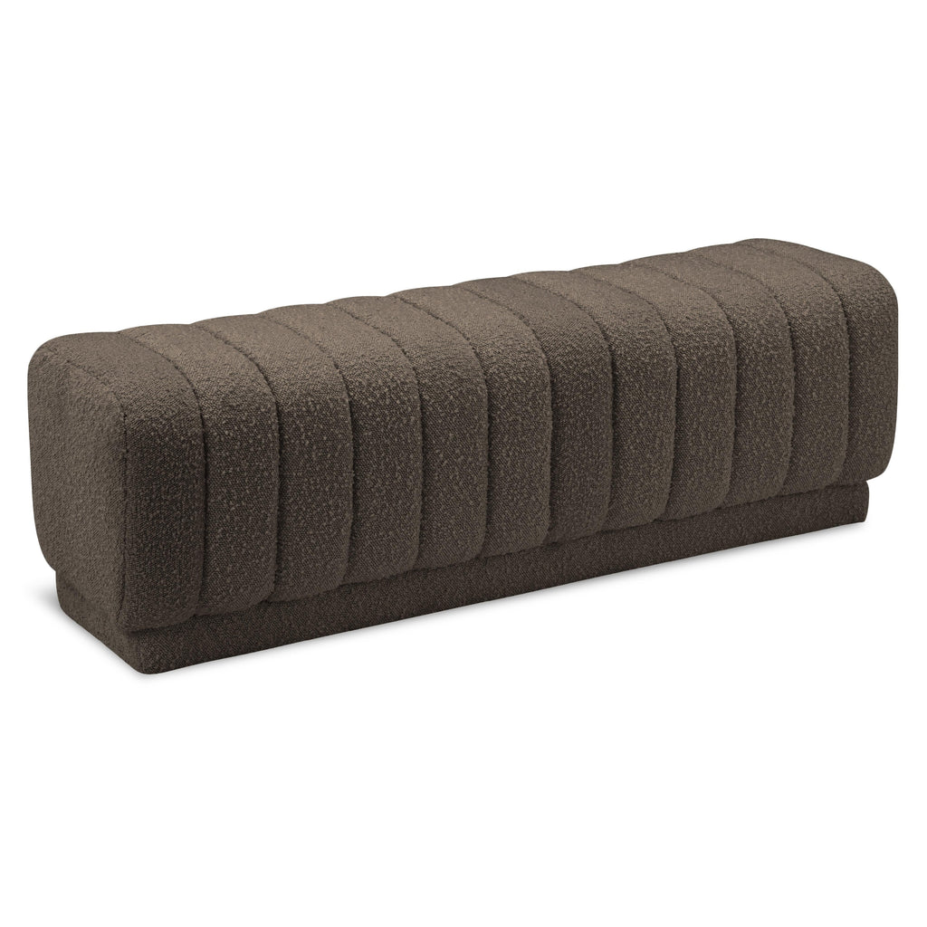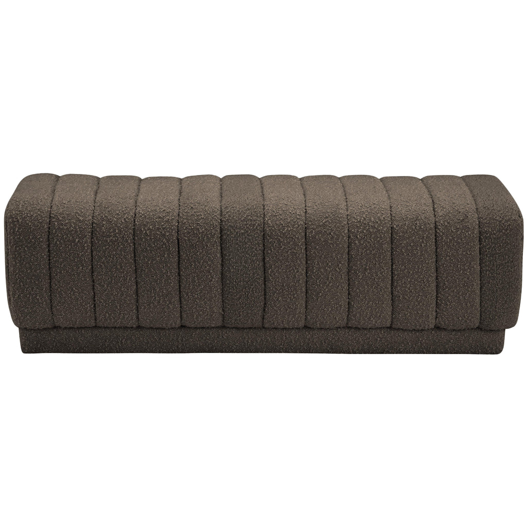 Place this lovely Heathrow ottoman at the foot of your bed or elsewhere to provide impromptu seating when you need it most. This elegant ottoman features rich brown boucle fabric covering every inch of its exterior, so its soft and welcoming to the touch. Deep channel tufting gives the ottoman texture while adding to its overall durability and longevity. The neutral color makes this ottoman/bench a fitting addition to nearly any space.
