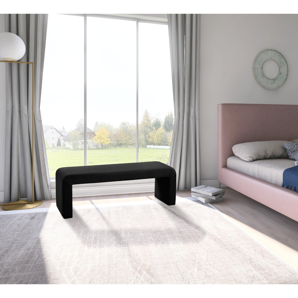 Bring a stunningly contemporary look to your space with this Minimalist velvet bench. This eye-grabbing bench gives you an ideal spot to sit while you pull on your boots or as an extra seat on family game night. Covered in soft black velvet material all over, this bench is bound to impress guests from all angles, from the mudroom to the foot of your bed in the master suite.
