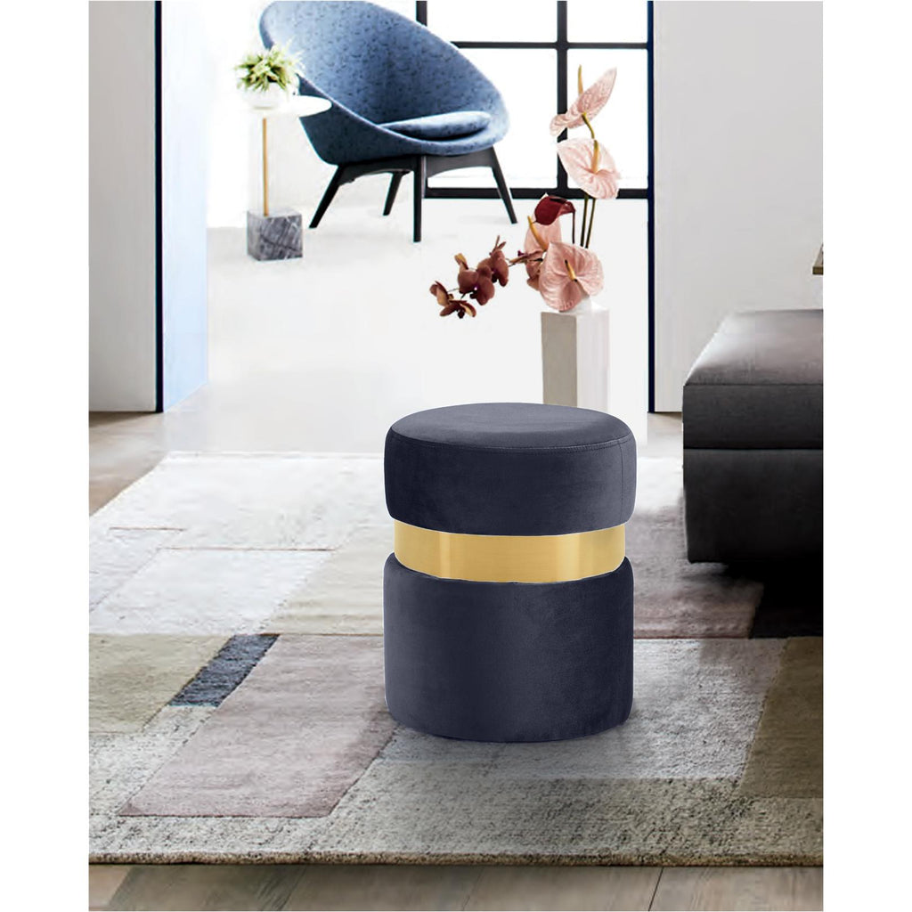 Put the finishing touch on your seating area with this Hailey Grey Velvet Ottoman/Stool. This handsome stool features an intersecting strip of stainless steel with a chic metallic finish, giving it a staggered look. The ottoman is covered in velvet upholstery for an upscale feel and soft touch against your skin. Place this fun and elegant stool in the living room for a comfortable foot prop or in the bedroom for an out-of-the-way seat.