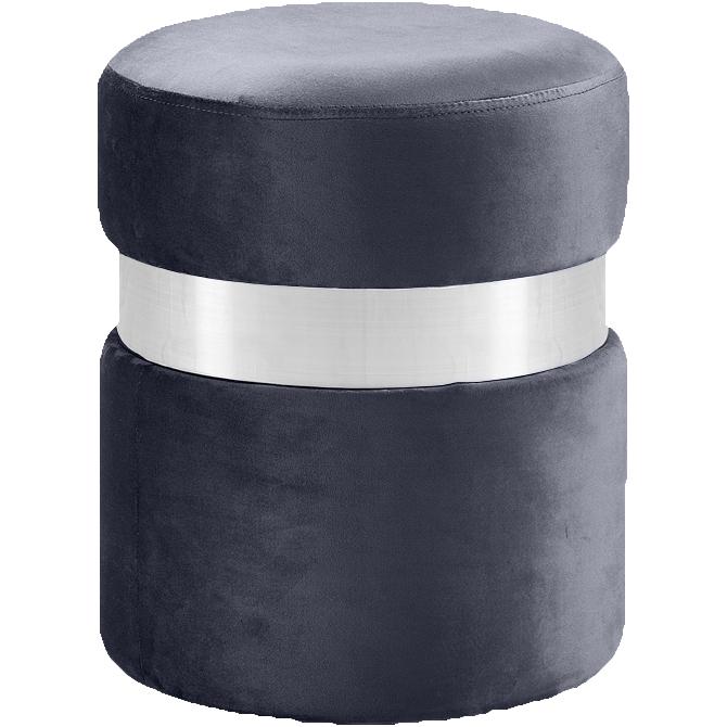 Put the finishing touch on your seating area with this Hailey Grey Velvet Ottoman/Stool. This handsome stool features an intersecting strip of chrome stainless steel with a chic metallic finish, giving it a staggered look. The ottoman is covered in velvet upholstery for an upscale feel and soft touch against your skin. Place this fun and elegant stool in the living room for a comfortable foot prop or in the bedroom for an out-of-the-way seat.