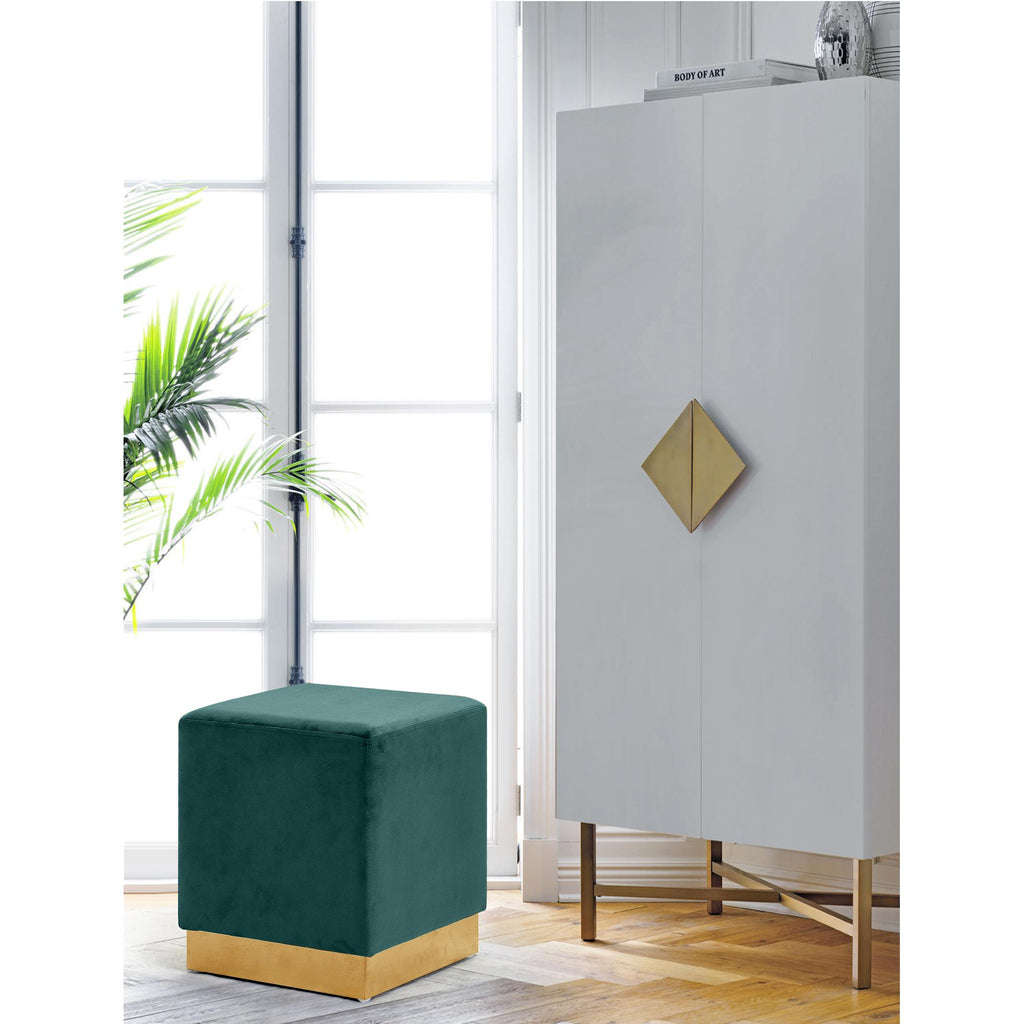 Get back to basics with a contemporary twist when you add the handsome Jax Green Velvet Ottoman/Stool to the mix. The velvet upholstery is nothing short of stunning and covers every inch of the ottoman with the exception of the contrasting gold stainless steel base. Your choice of fashionable colors makes it easy to pair this stool with your existing seating group in the living room or den or add a splash of excitement to a bedroom or dressing area.