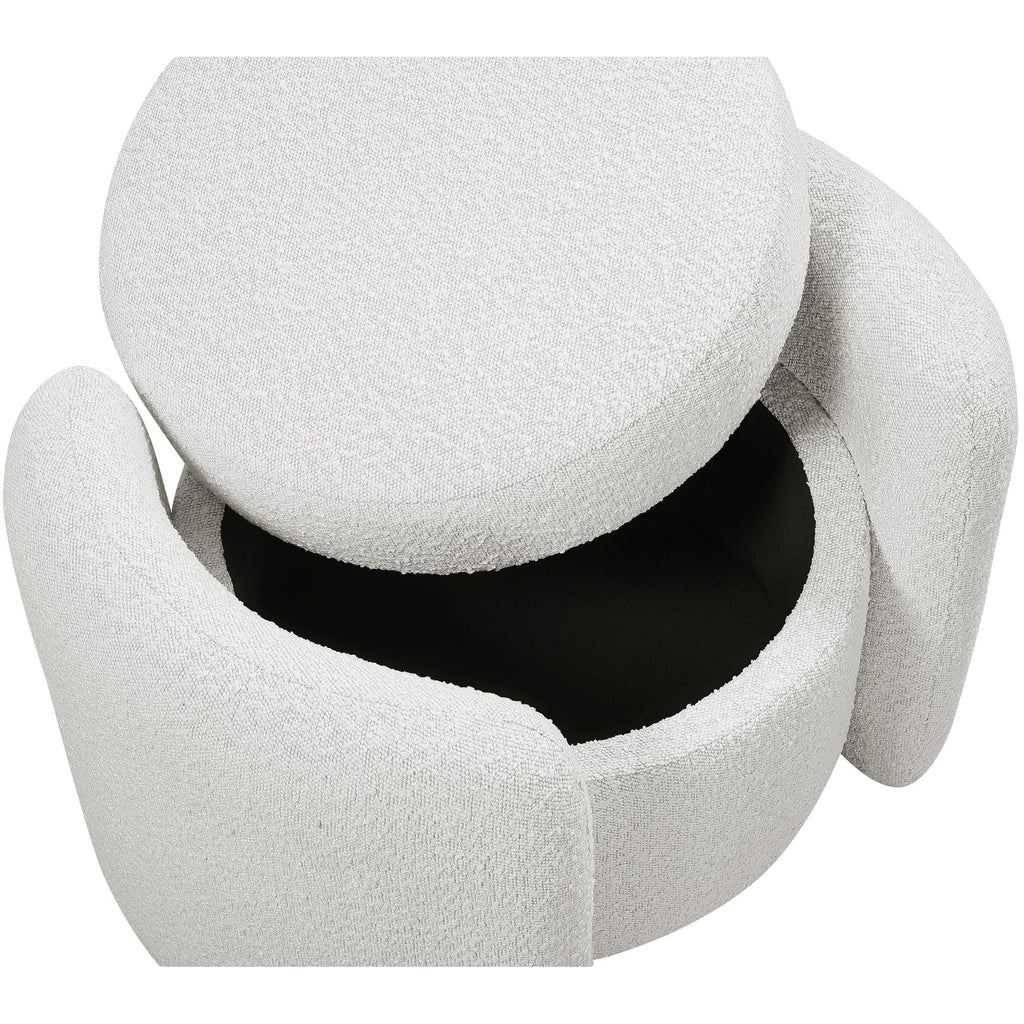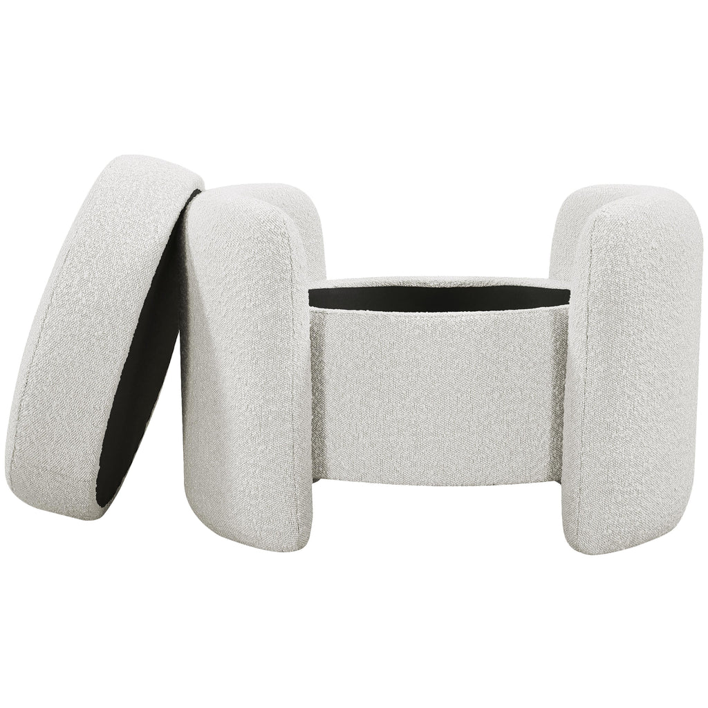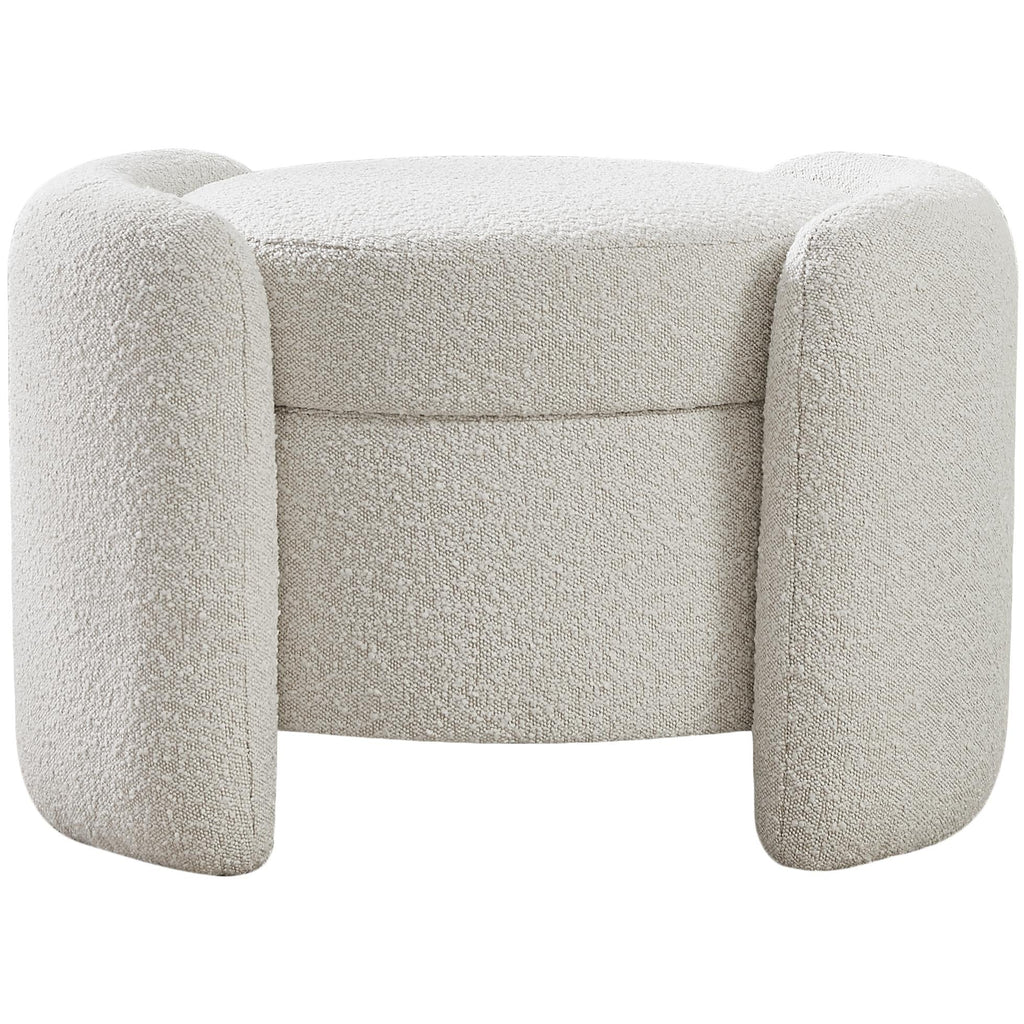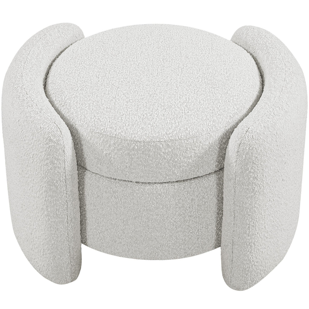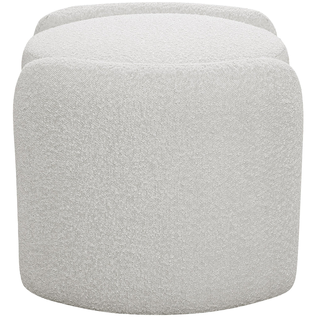 Kick back and relax in style with the Horizon ottoman from Meridian Furniture. Featuring elegant cream boucle fabric and a unique contemporary design, this ottoman will add a chic touch to any space in your home. Its seat width makes it the perfect size for resting your legs or provides your home with an additional seat for visitors. With its light weight, this ottoman can easily be moved, making it a versatile accent piece for any room.