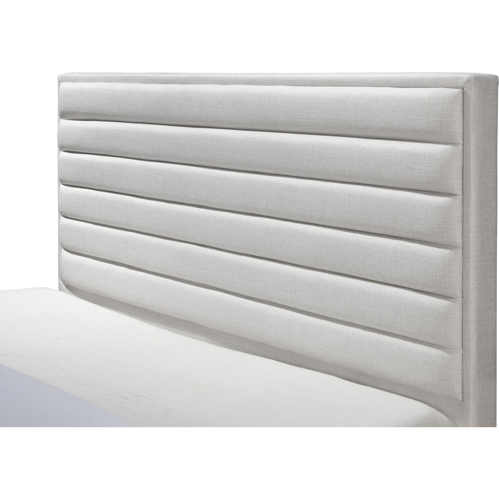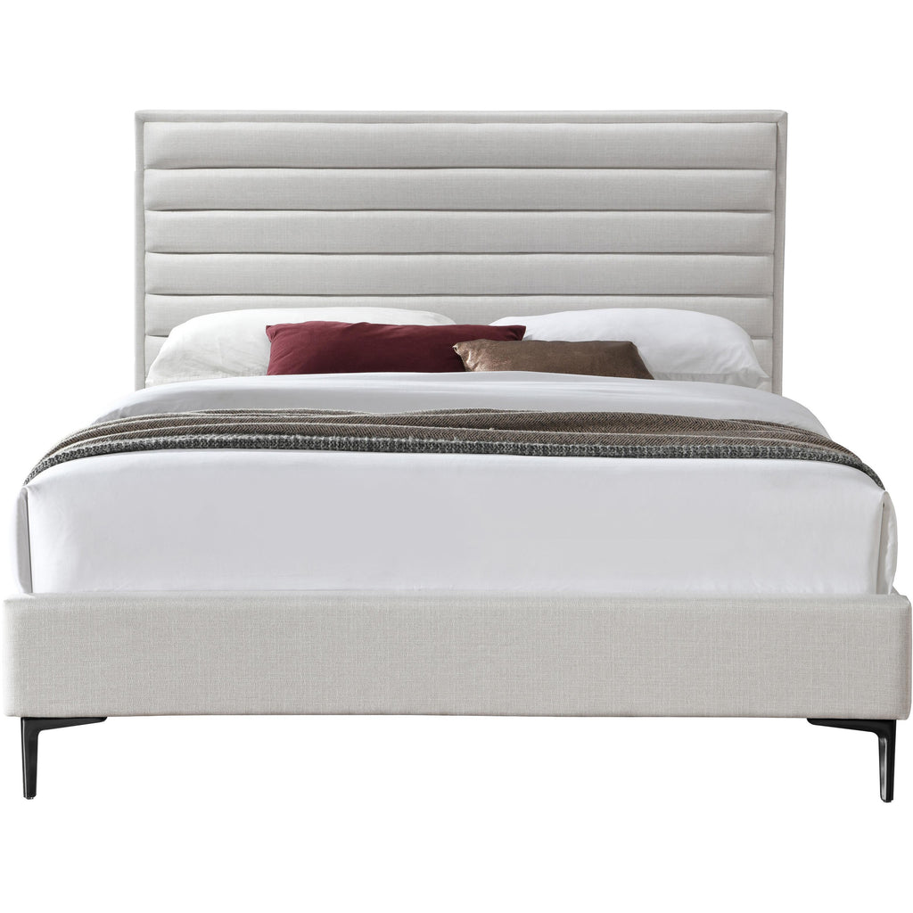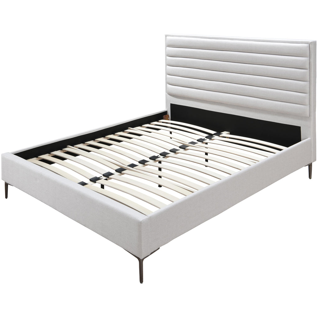 Experience luxury and beauty with this Hunter linen textured bed. Designed to give your bedroom space an instant upscale look, this Hunter bed features soft yet durable linen textured fabric in a cream color that melds nicely with other color elements in your bedroom. Deep horizontal channel tufting runs the length of the headboard, giving it a sumptuous and inviting appeal. The bed's matte black legs finish the design on a truly modern note.