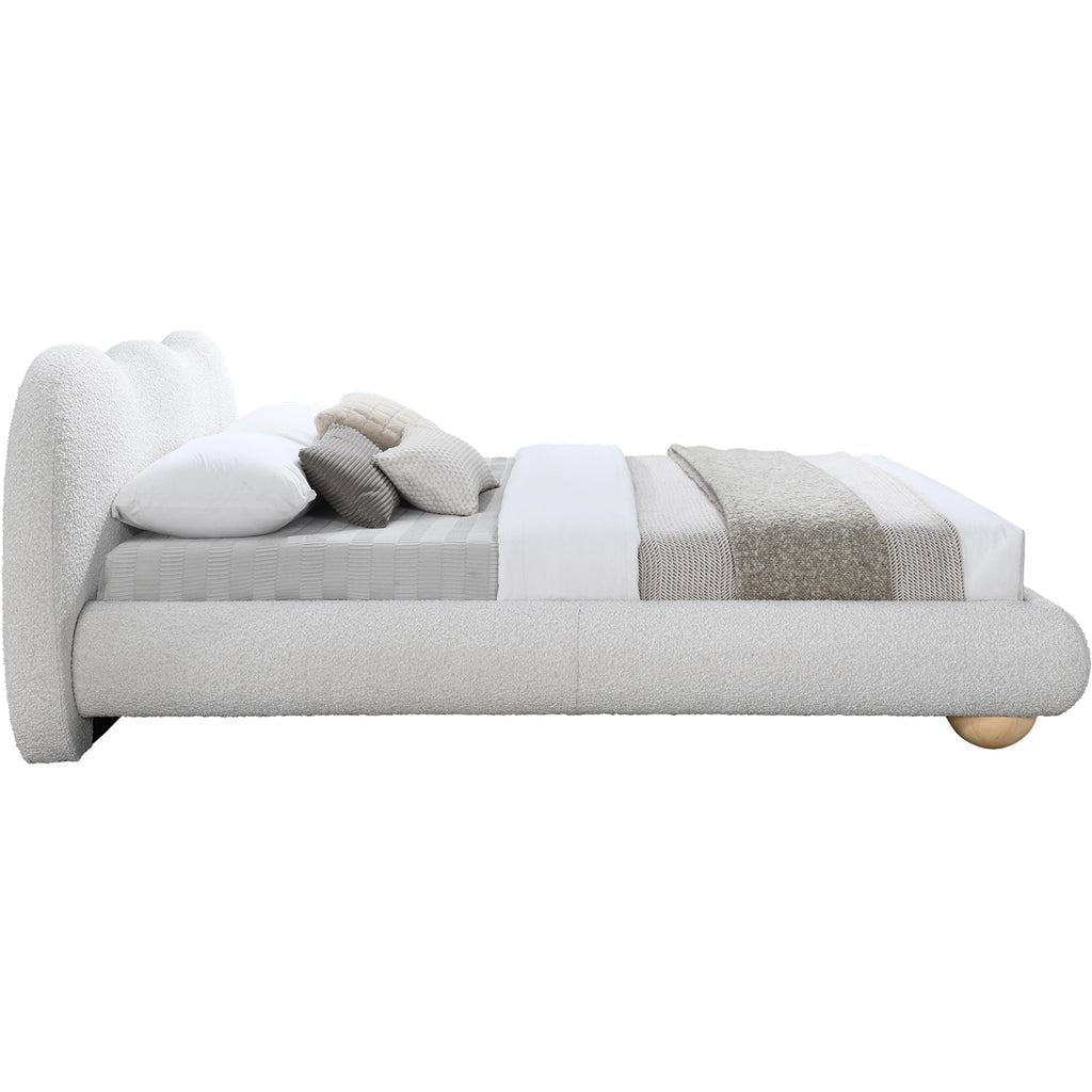 Escape to a haven of restful nights and luxurious mornings with the Hyde Boucle Fabric Bed, a versatile centerpiece that caters to your unique style and comfort preferences. The bed is enveloped in rich cream boucle fabric, its sumptuous texture adding depth and dimension to your bedroom. This captivating material creates a striking contrast against lighter bedding and decor, ensuring your bed remains a stylish focal point regardless of your chosen aesthetic. The appeal doesn't stop at beauty. It offers the unique option of both natural finish and black finish solid wood legs, included with each bed. This allows you to effortlessly adapt the bed to your existing decor or even transform its entire look with a simple switch. Unwind, relax, and experience the true meaning of blissful sleep with the Hyde Boucle Full-sized Fabric Bed.