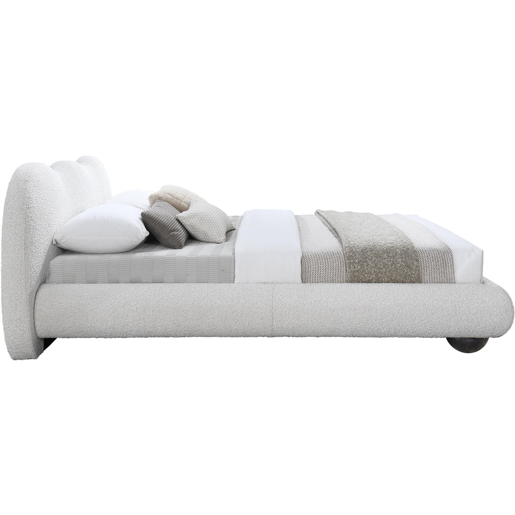 Escape to a haven of restful nights and luxurious mornings with the Hyde Boucle Fabric Bed, a versatile centerpiece that caters to your unique style and comfort preferences. The bed is enveloped in rich cream boucle fabric, its sumptuous texture adding depth and dimension to your bedroom. This captivating material creates a striking contrast against lighter bedding and decor, ensuring your bed remains a stylish focal point regardless of your chosen aesthetic. The appeal doesn't stop at beauty. It offers the unique option of both natural finish and black finish solid wood legs, included with each bed. This allows you to effortlessly adapt the bed to your existing decor or even transform its entire look with a simple switch. Unwind, relax, and experience the true meaning of blissful sleep with the Hyde Boucle Queen-sized Fabric Bed.