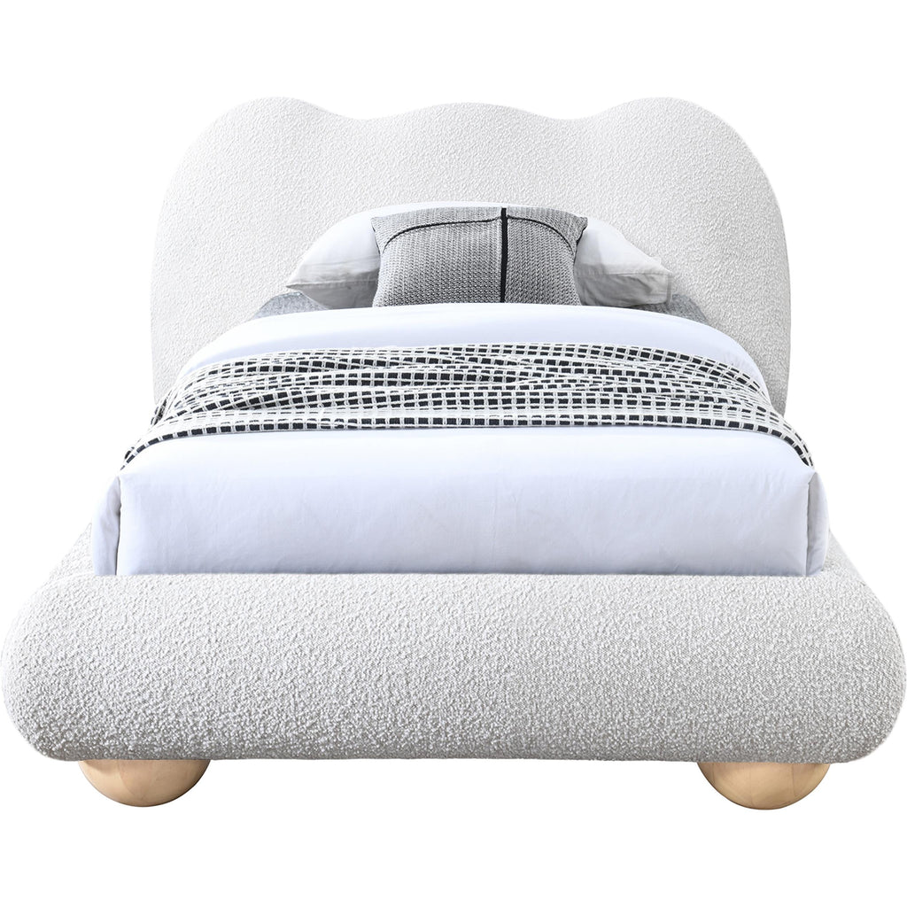 Escape to a haven of restful nights and luxurious mornings with the Hyde Boucle Fabric Bed, a versatile centerpiece that caters to your unique style and comfort preferences. The bed is enveloped in rich cream boucle fabric, its sumptuous texture adding depth and dimension to your bedroom. This captivating material creates a striking contrast against lighter bedding and decor, ensuring your bed remains a stylish focal point regardless of your chosen aesthetic. The appeal doesn't stop at beauty. It offers the unique option of both natural finish and black finish solid wood legs, included with each bed. This allows you to effortlessly adapt the bed to your existing decor or even transform its entire look with a simple switch. Unwind, relax, and experience the true meaning of blissful sleep with the Hyde Boucle Twin-sized Fabric Bed.