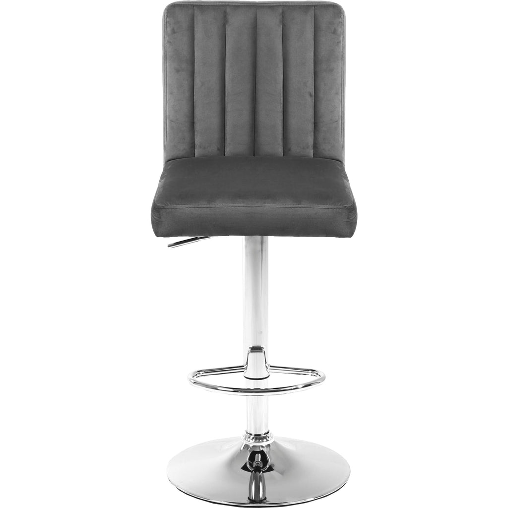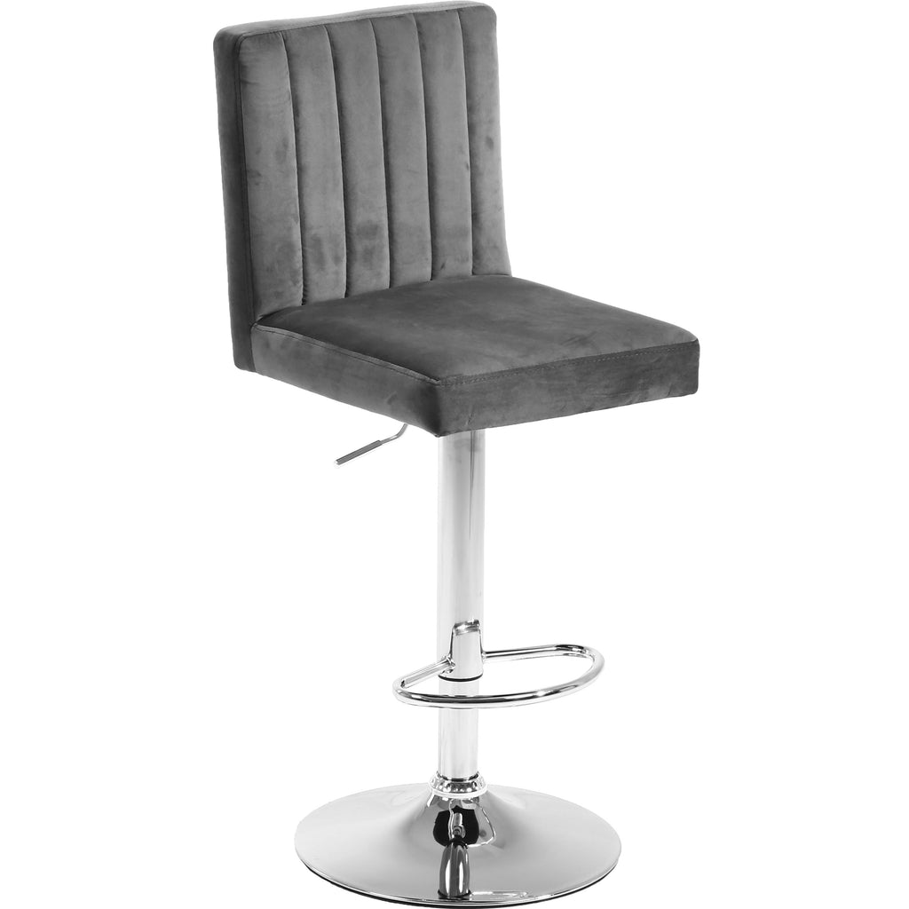 Relax in total comfort while sipping cocktails from this Joel Grey Velvet Adjustable Stool. Rich velvet upholstery gives this stool a luxe look that oozes glamour and sophistication with every turn. The chrome-finished base has a definitive modern edge, and a foot rail on the bottom gives you a spot to rest your feet while you unwind. Easily raise or lower the seat with just the touch of a lever to ensure custom comfort at the home bar or your kitchen counter.