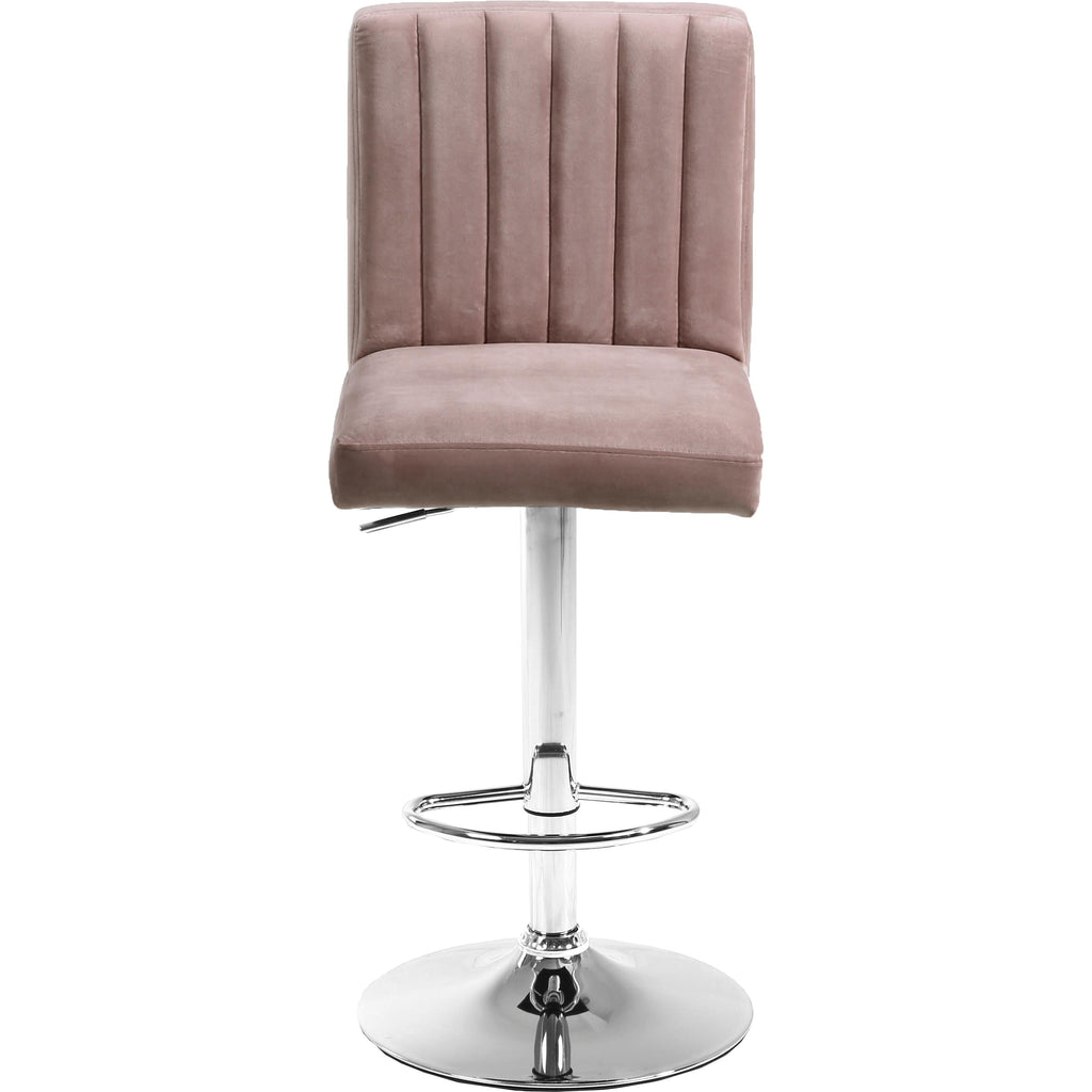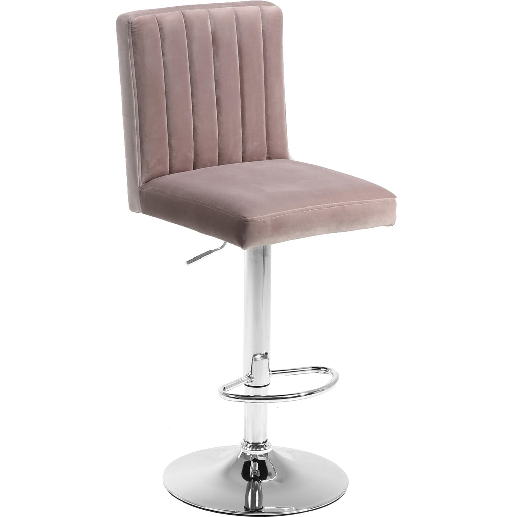 Relax in total comfort while sipping cocktails from this Joel Pink Velvet Adjustable Stool. Rich velvet upholstery gives this stool a luxe look that oozes glamour and sophistication with every turn. The chrome-finished base has a definitive modern edge, and a foot rail on the bottom gives you a spot to rest your feet while you unwind. Easily raise or lower the seat with just the touch of a lever to ensure custom comfort at the home bar or your kitchen counter.