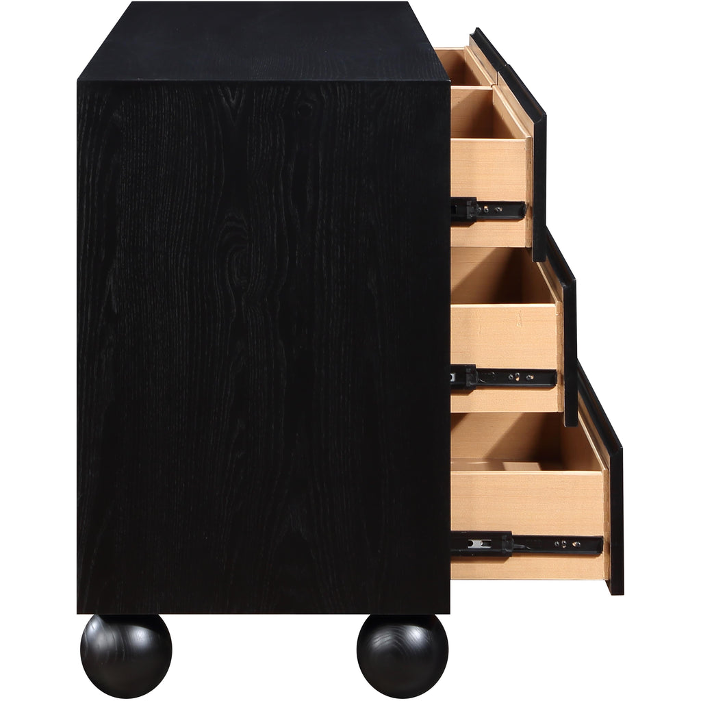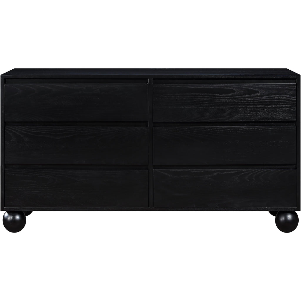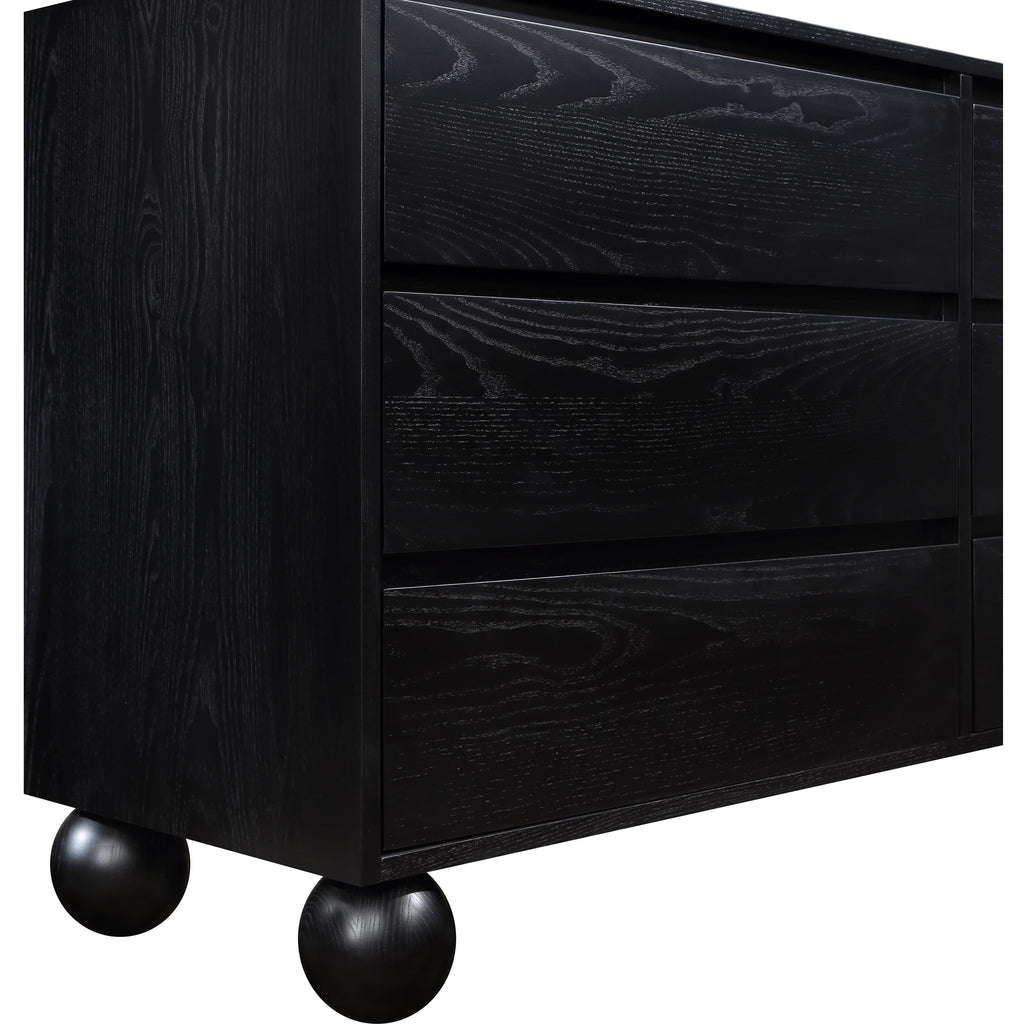 Revamp your bedroom with the sleek design of the Kent Dresser. Crafted from solid ash wood and finished in a rich, deep black hue, this dresser features clean lines and a minimalist design that is sure to impress. The ball-shaped legs add a touch of luxury and elegance, creating a truly timeless look that will enhance any living space. Whether you're looking for a stylish storage solution for your bedroom or a statement piece for your living room, the Kent Black Chest is the perfect choice.