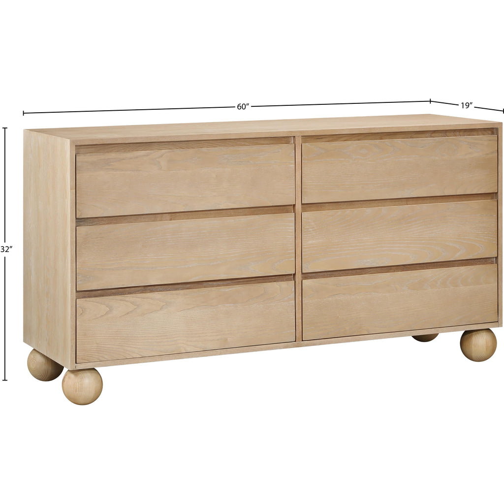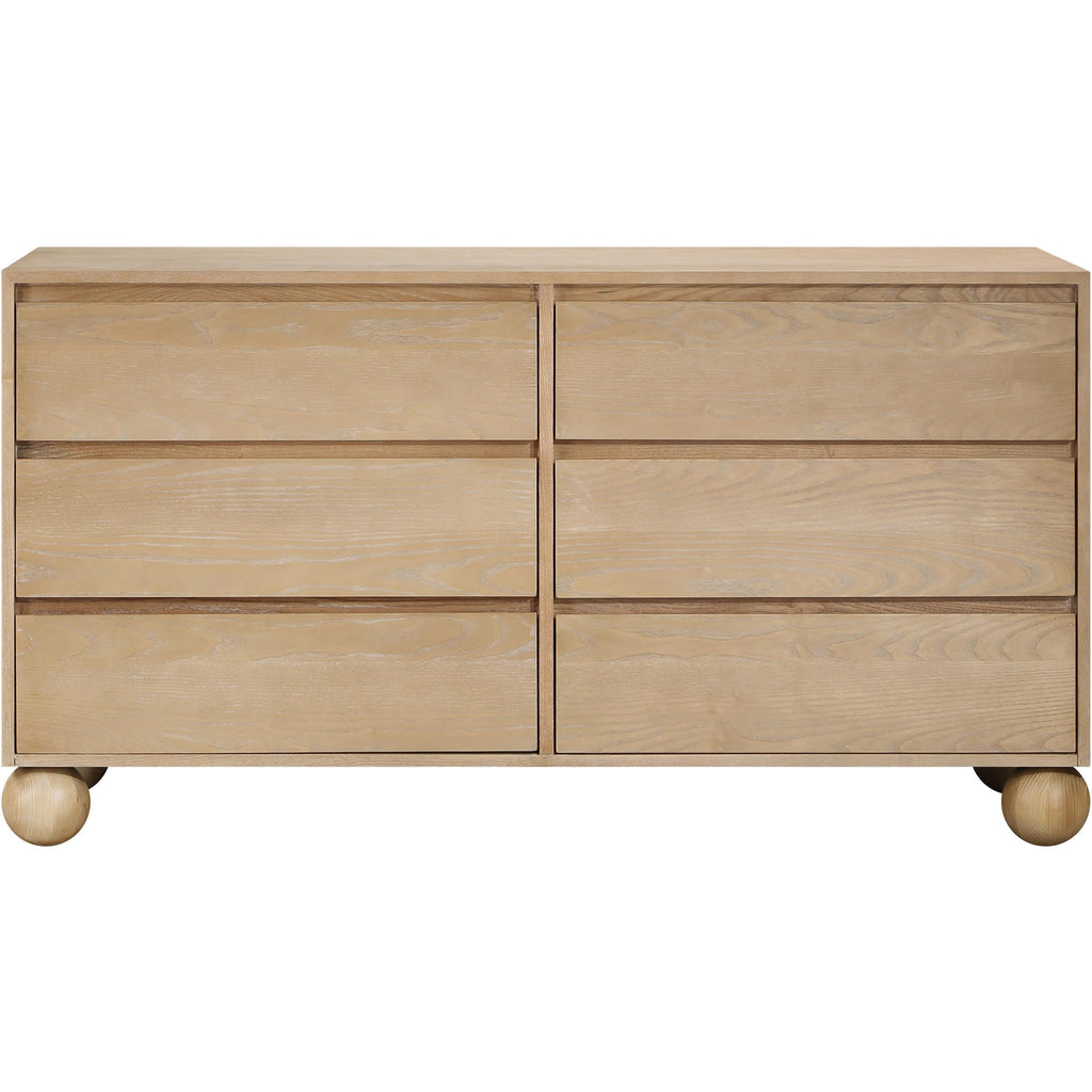Revamp your bedroom with the sleek design of the Kent Dresser. Crafted from solid ash wood and finished in a rich natural hue, this dresser features clean lines and a minimalist design that is sure to impress. The ball-shaped legs add a touch of luxury and elegance, creating a truly timeless look that will enhance any living space. Whether you're looking for a stylish storage solution for your bedroom or a statement piece for your living room, the Kent Cream Chest is the perfect choice.