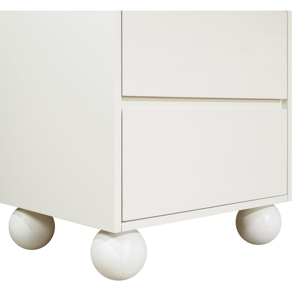 Revamp your bedroom with the sleek design of the Kent Night Stand. Crafted from solid ash wood and finished in a rich cream hue, this night stand features clean lines and a minimalist design that is sure to impress. The ball-shaped legs add a touch of luxury and elegance, creating a truly timeless look that will enhance any living space. Whether you're looking for a stylish storage solution for your bedroom or a statement piece for your living room, the Kent Cream Chest is the perfect choice.