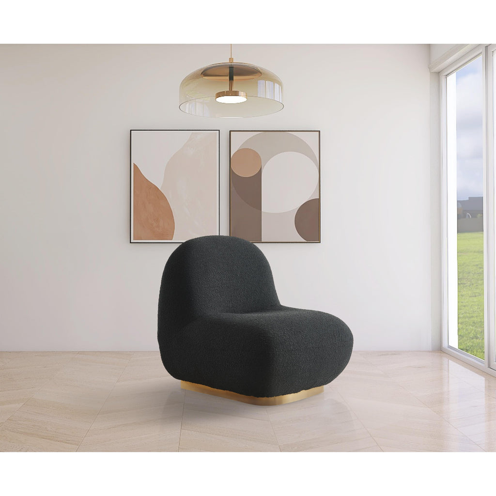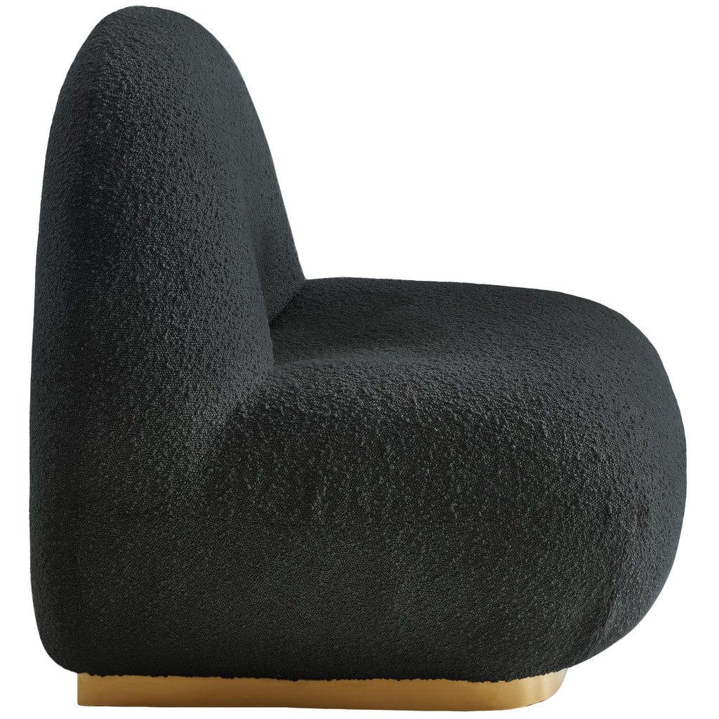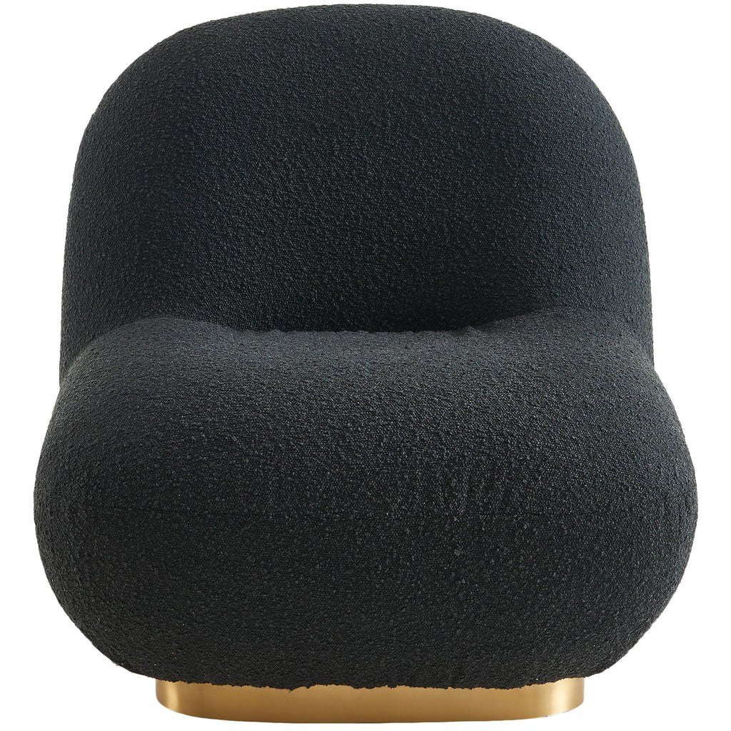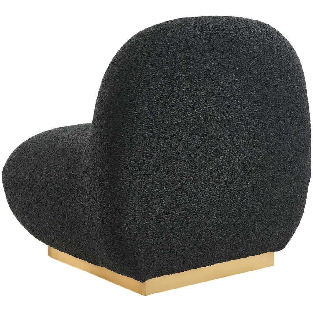 Add a simple yet eye-catching touch to your home with this Liam accent chair. Upholstered with black boucle fabric and featuring a brushed gold metal base, this simplistic accent chair is both comfortable and stylish. Its wood, stainless steel, and foam construction ensures sturdiness so it can seat just about anyone in your home. Add it to any room where you want to bring an element of stylish sophistication to the forefront.