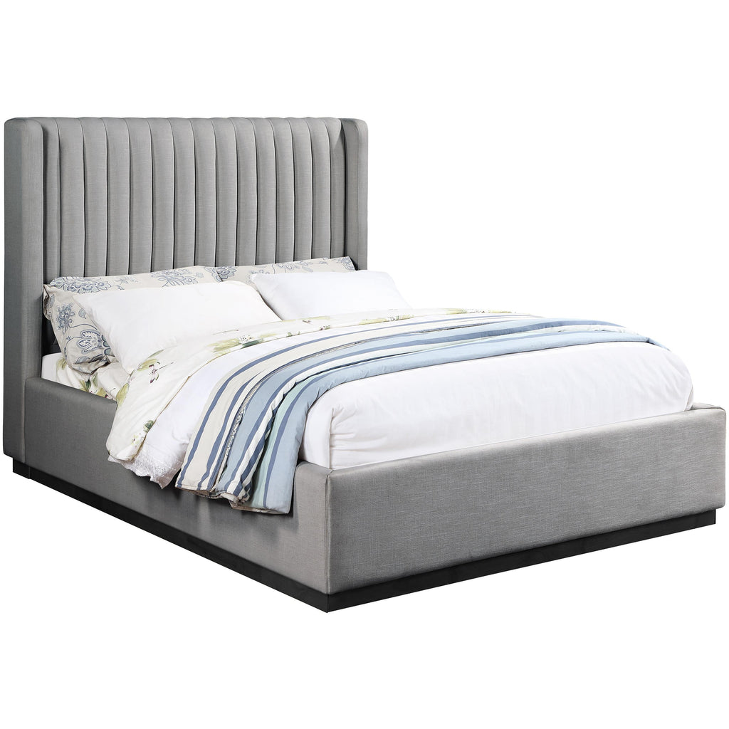 Nestle you (or the two of you) into the welcoming confines of this Logan linen textured fabric bed. This handsome bed features a super tall headboard that's channel tufted for extra softness and support against your back while you catch up on your reading or watch TV in bed. Soft rich grey linen fabric covers the back and sides of this wingback bed, giving it an ultra modern feel. A solid finished wood base provides ample support for lasting performance and durability.