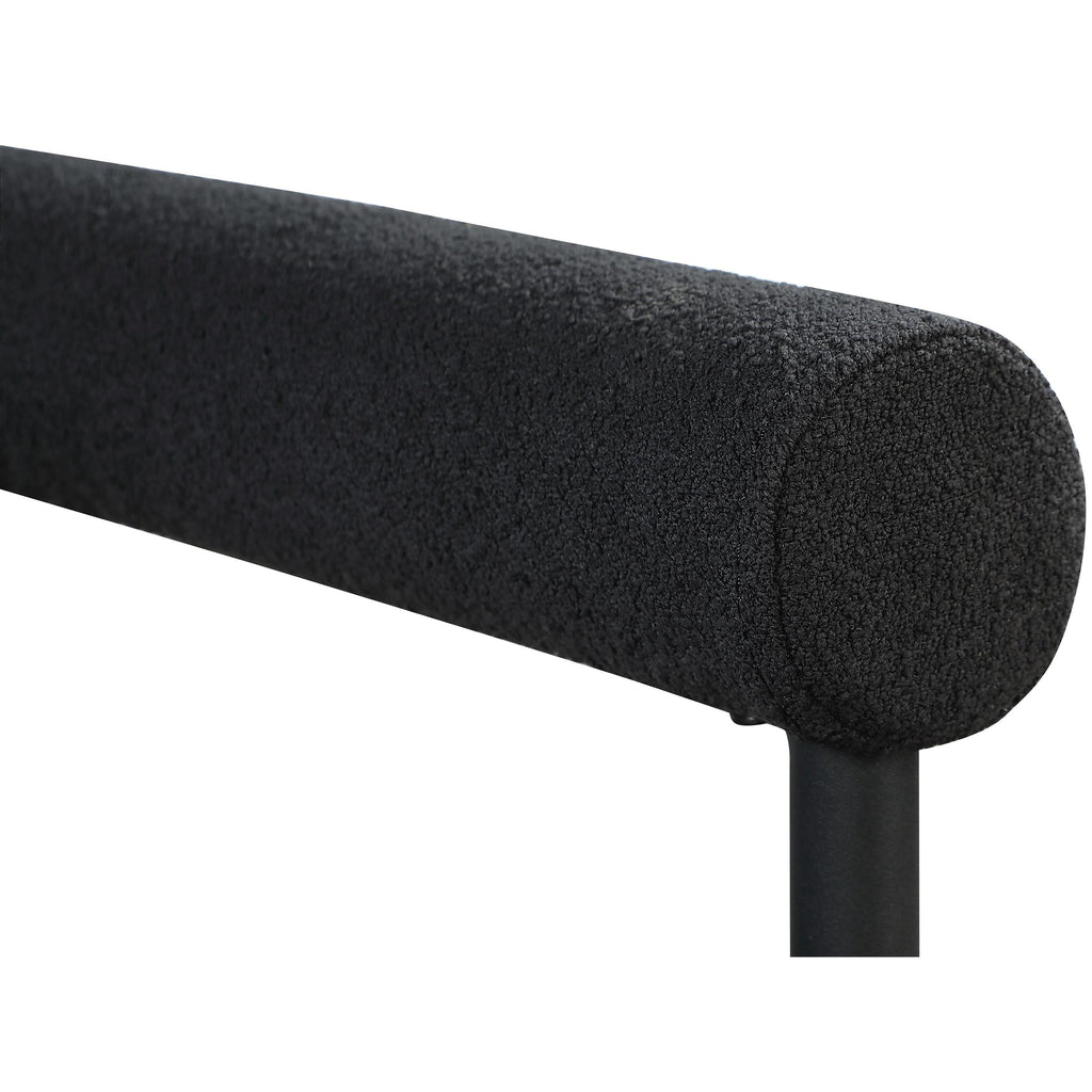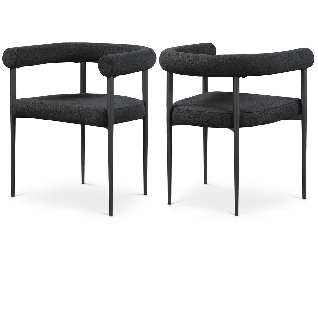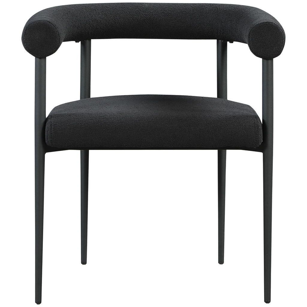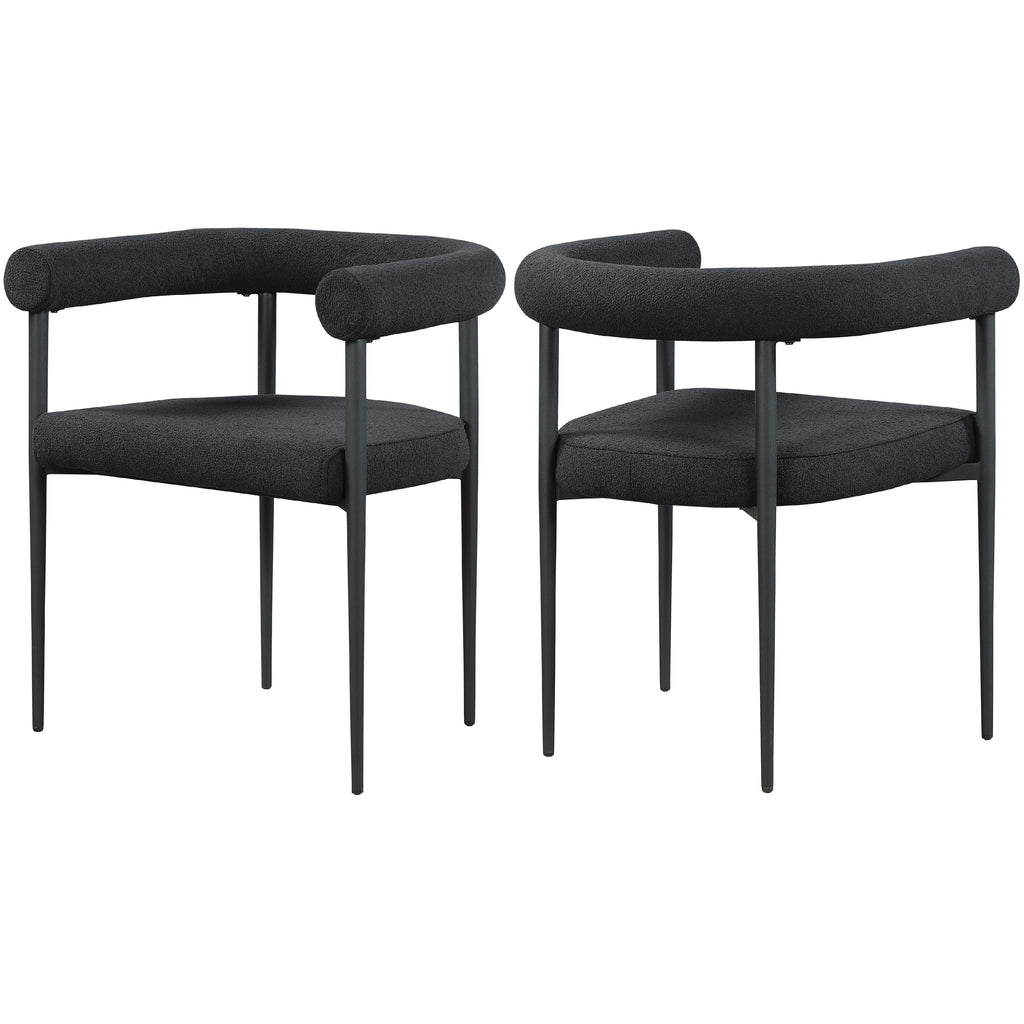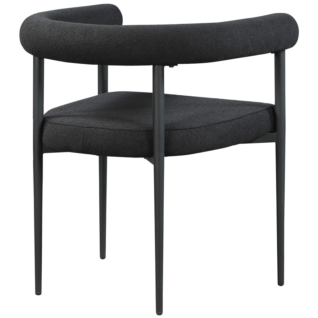 Bring home this Louie boucle fabric dining chair to add a touch of modern fun and sophistication to your space. This dining chair is the perfect addition to your up-to-the-minute dining area, with its curved back and eye-grabbing overall aesthetic. Rich black boucle fabric covers the seat and back, giving it a luxe look. An all-metal frame adds sturdy stability and resilient durability, ensuring lasting use in your home.