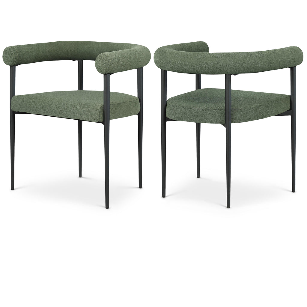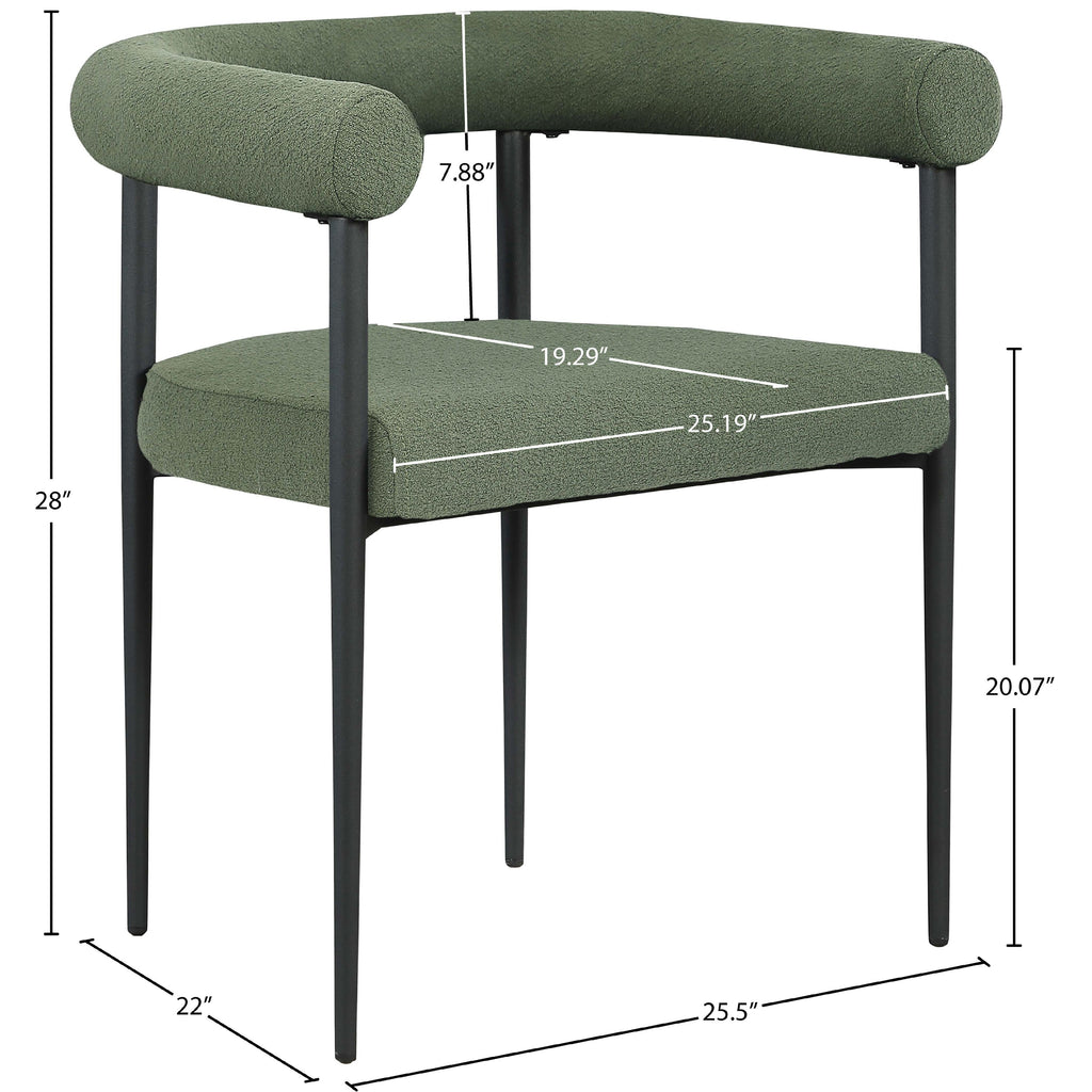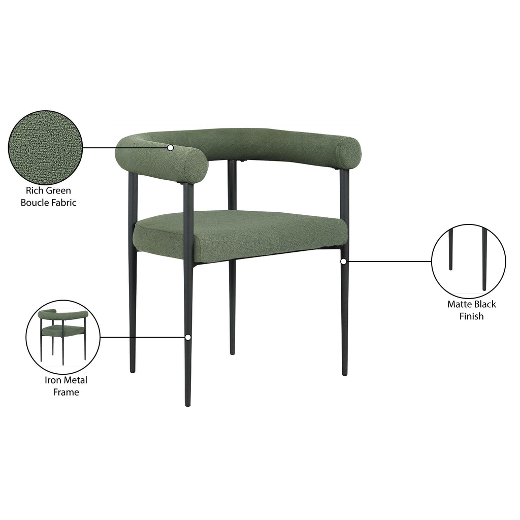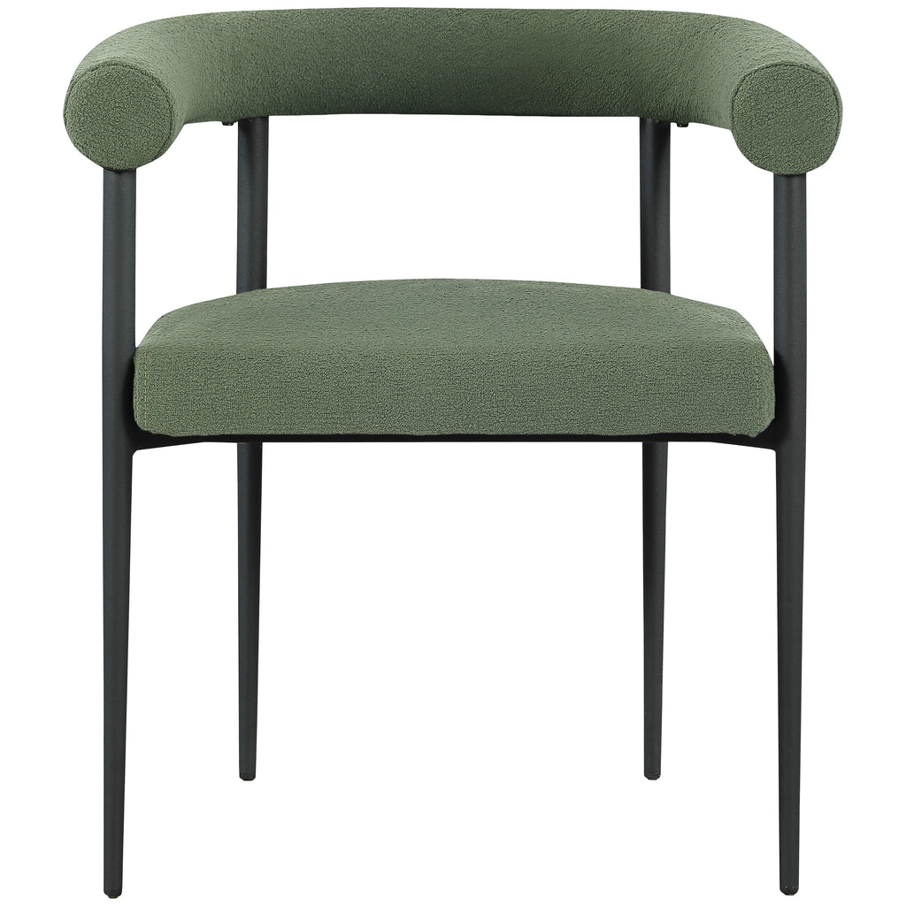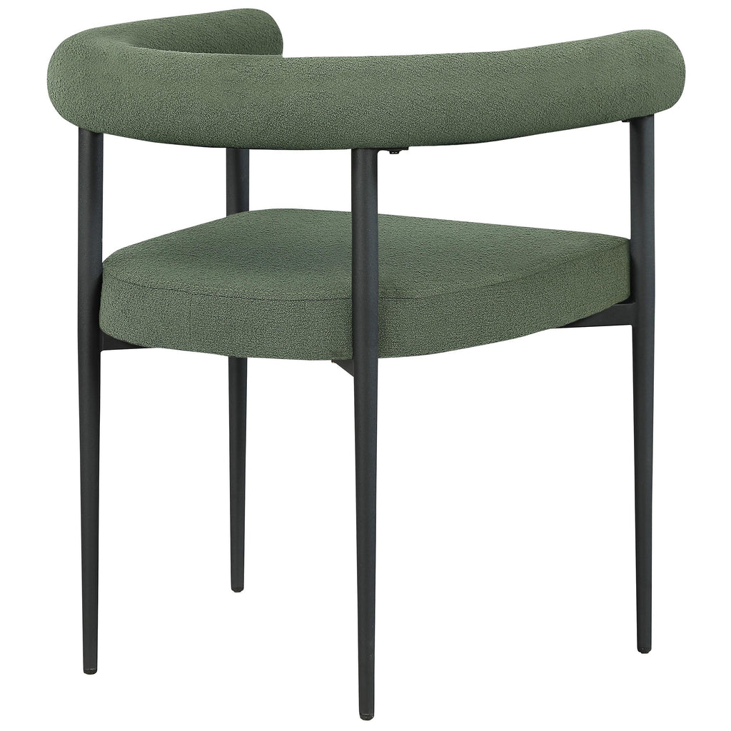Bring home this Louie boucle fabric dining chair to add a touch of modern fun and sophistication to your space. This dining chair is the perfect addition to your up-to-the-minute dining area, with its curved back and eye-grabbing overall aesthetic. Rich green boucle fabric covers the seat and back, giving it a luxe look. An all-metal frame adds sturdy stability and resilient durability, ensuring lasting use in your home.
