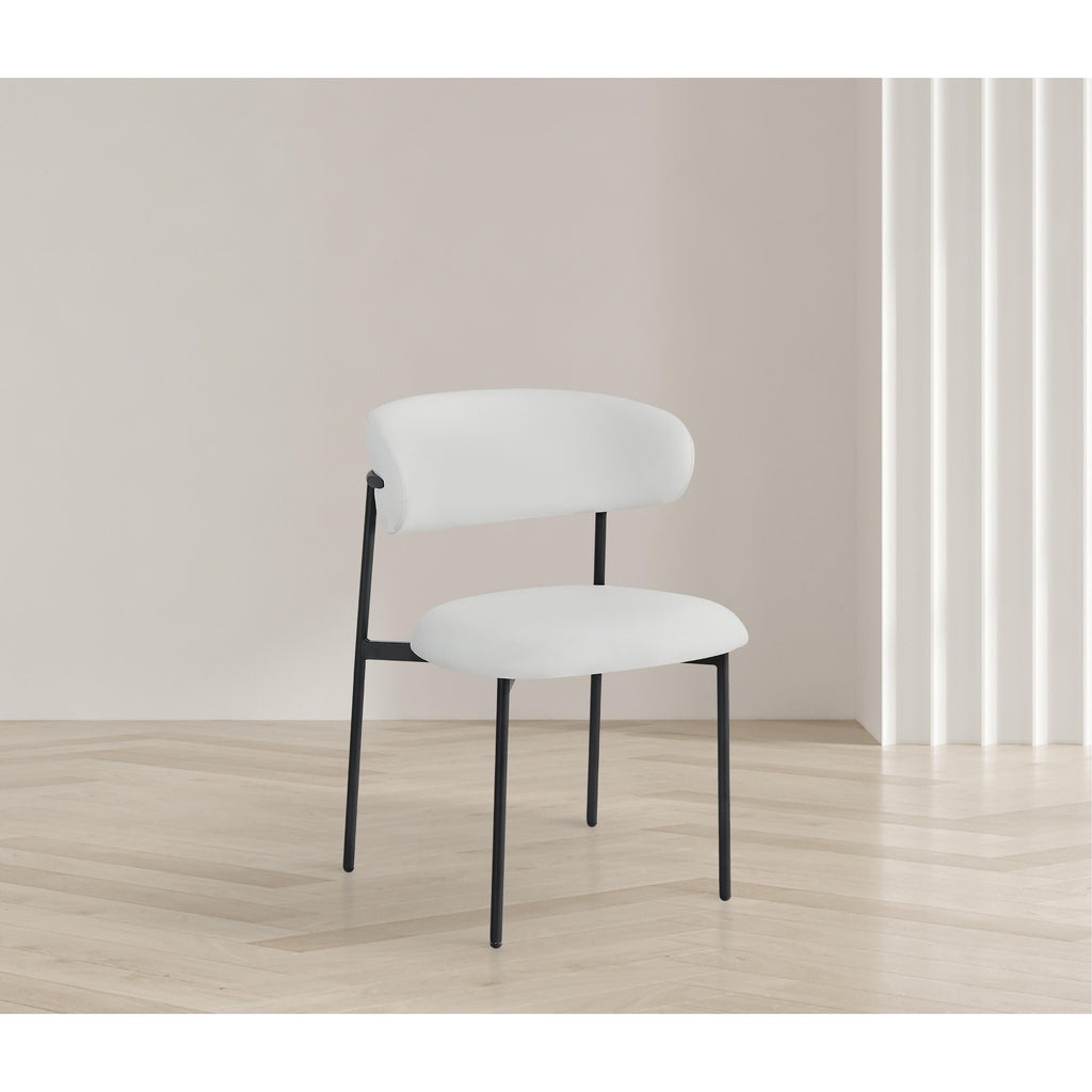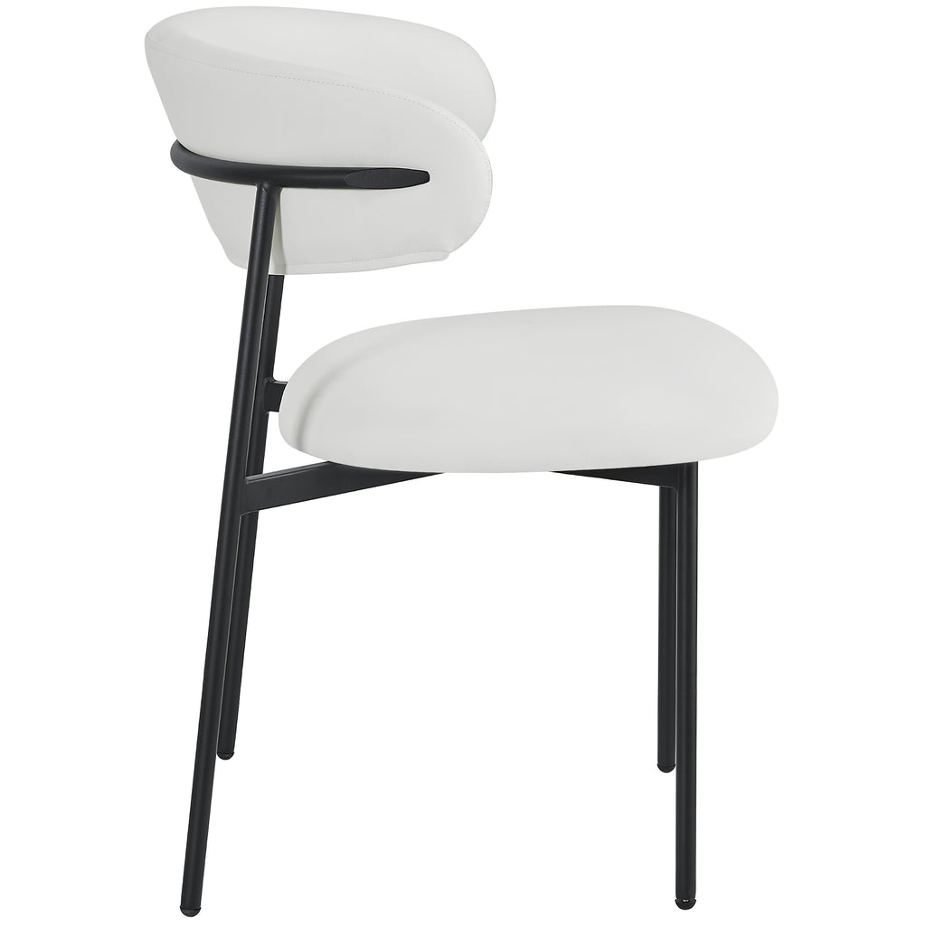 Take dining to a sophisticated new level with these Lupita vegan leather dining chairs. Boasting a matte black finish on the frame and legs for an elegant, refined feel, this pack of two vegan leather dining chairs features curved backs for total comfort all the way through the desert course. Padded cushions on the back and seat add to dining comfort. Pair these chairs with your favorite table for an upscale look in an instant.