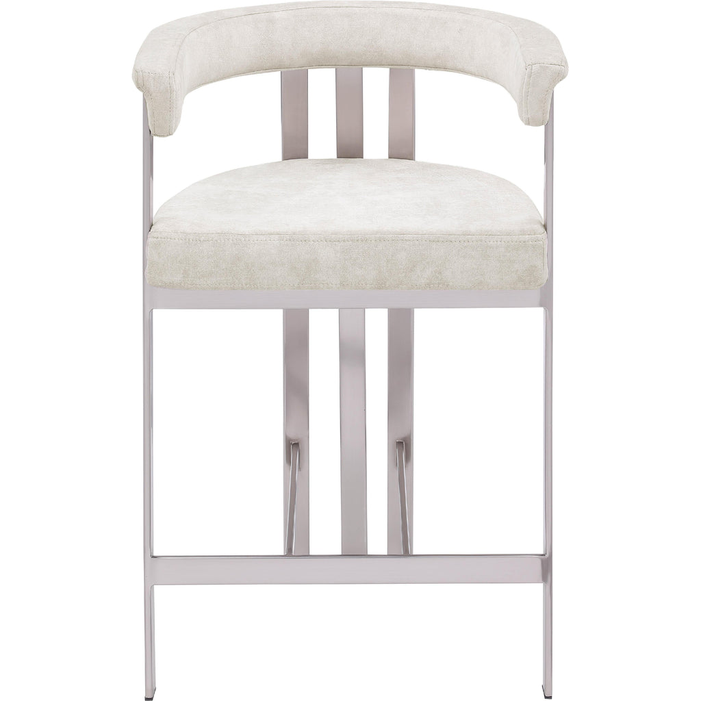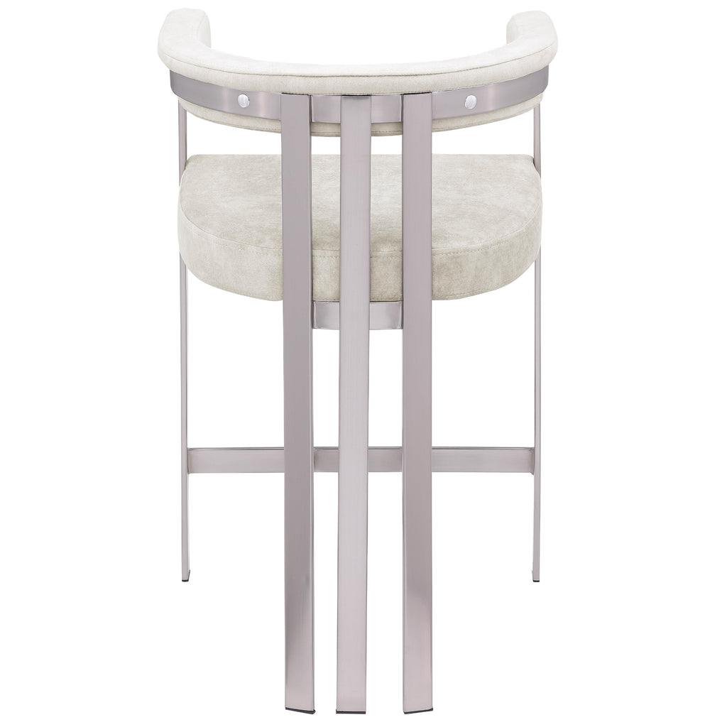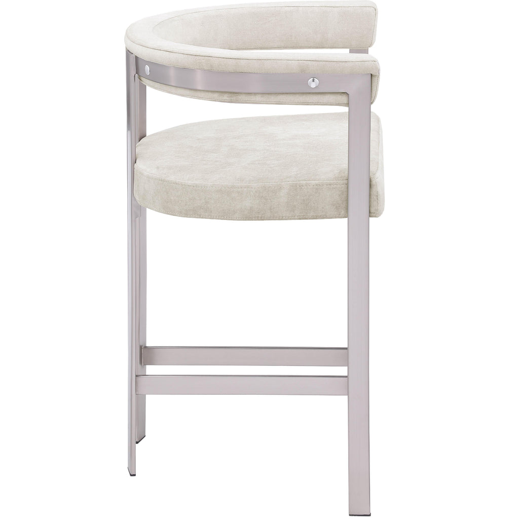 Turn your dining space into a contemporary haven with this Marcello stone velvet counter stool. Its soft, high-end stone velvet is soft for you to sit on, while its brushed chrome iron frame ensures durability for years to come. Its curved back provides support while you sit and enjoy your meal, so your back won't get tired or hurt while you eat. Its curved, contemporary design is perfect for any modern home.