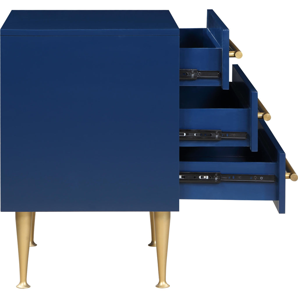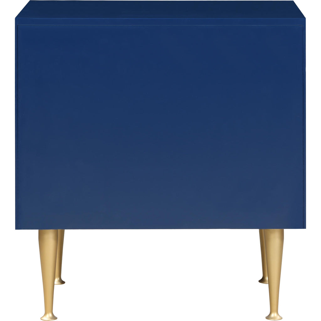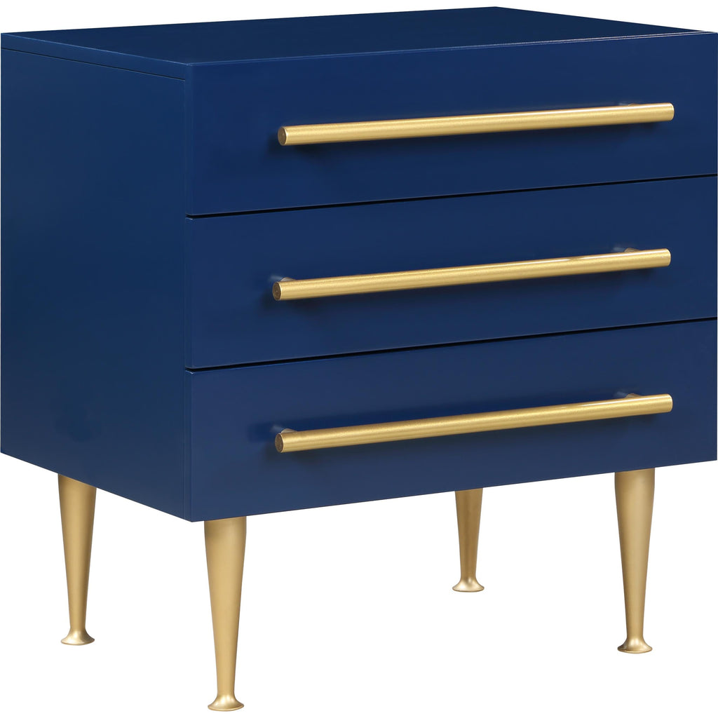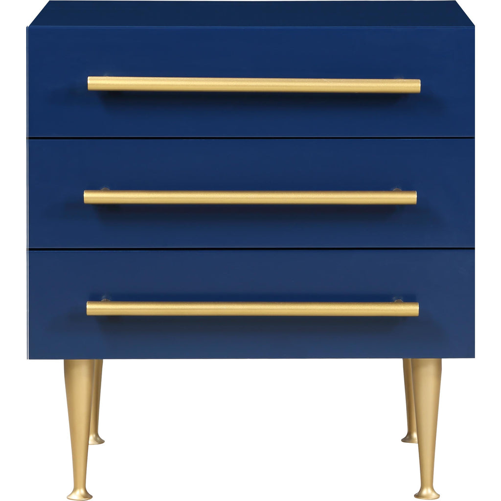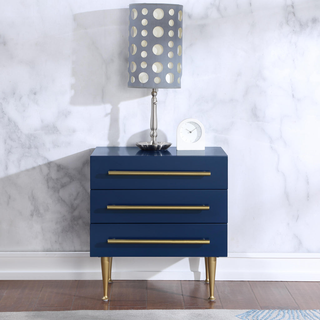Turn to the Marisol night stand to make a big impression in your modern bedroom. This contemporary piece looks great on its own or paired with other items in the Marisol collection. Eye-catchingly elegant, this piece features a rich navy finish with brushed gold metal legs and handle for an up-to-the-minute vibe in your bedroom sanctuary. Minimalist hardware adds functionality without overpowering the unit. Wood construction adds to its durable design.