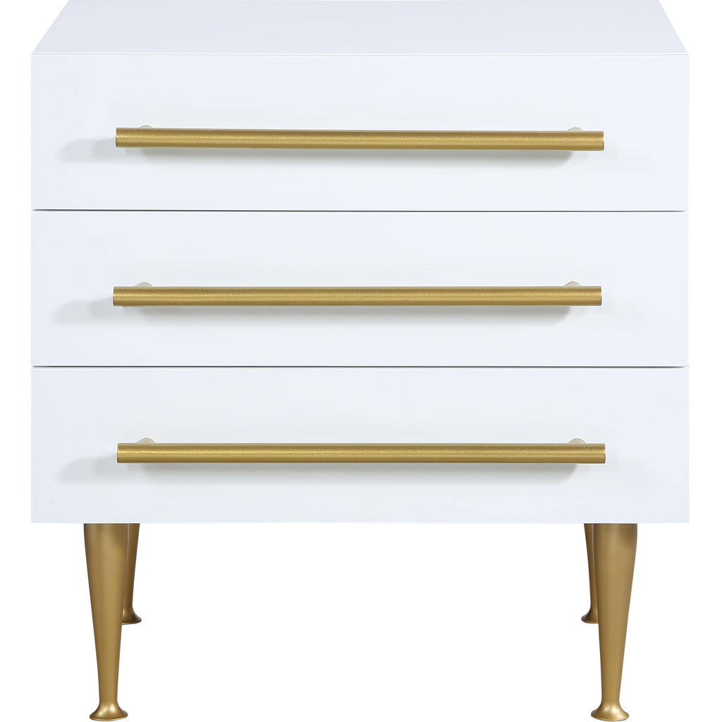 Turn to the Marisol night stand to make a big impression in your modern bedroom. This contemporary piece looks great on its own or paired with other items in the Marisol collection. Eye-catchingly elegant, this piece features a rich white finish with brushed gold metal legs and handle for an up-to-the-minute vibe in your bedroom sanctuary. Minimalist hardware adds functionality without overpowering the unit. Wood construction adds to its durable design.