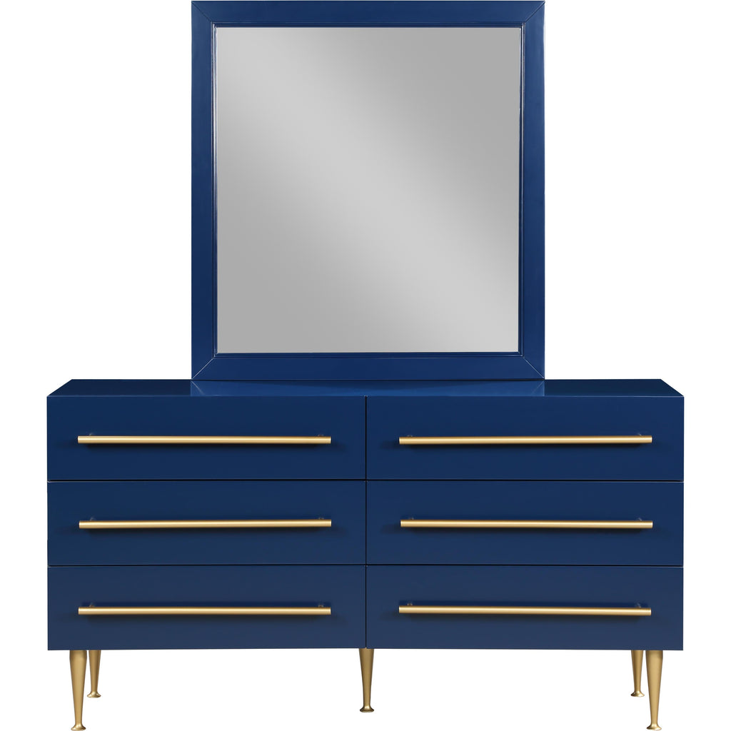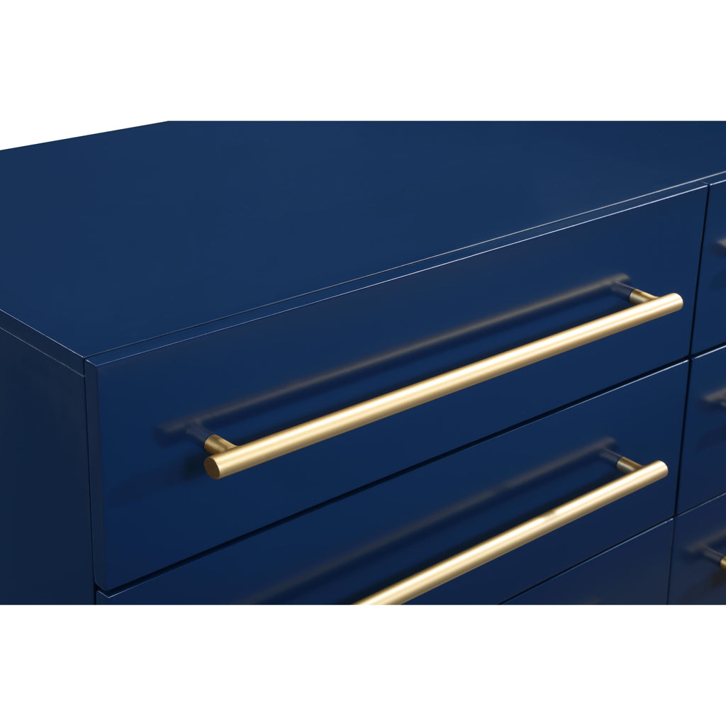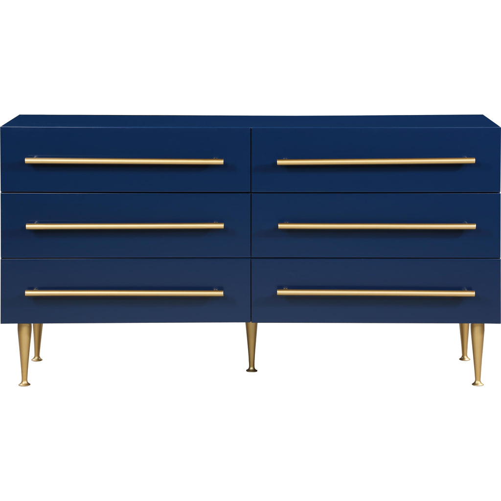 Turn to the Marisol dresser to make a big impression in your modern bedroom. This contemporary piece looks great on its own or paired with other items in the Marisol collection. Eye-catchingly elegant, this piece features a rich navy finish with brushed gold metal legs and handle for an up-to-the-minute vibe in your bedroom sanctuary. Minimalist hardware adds functionality without overpowering the unit. Wood construction adds to its durable design.