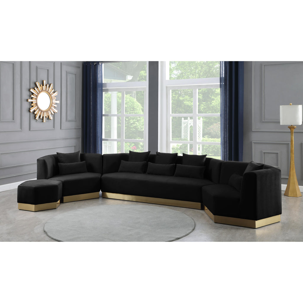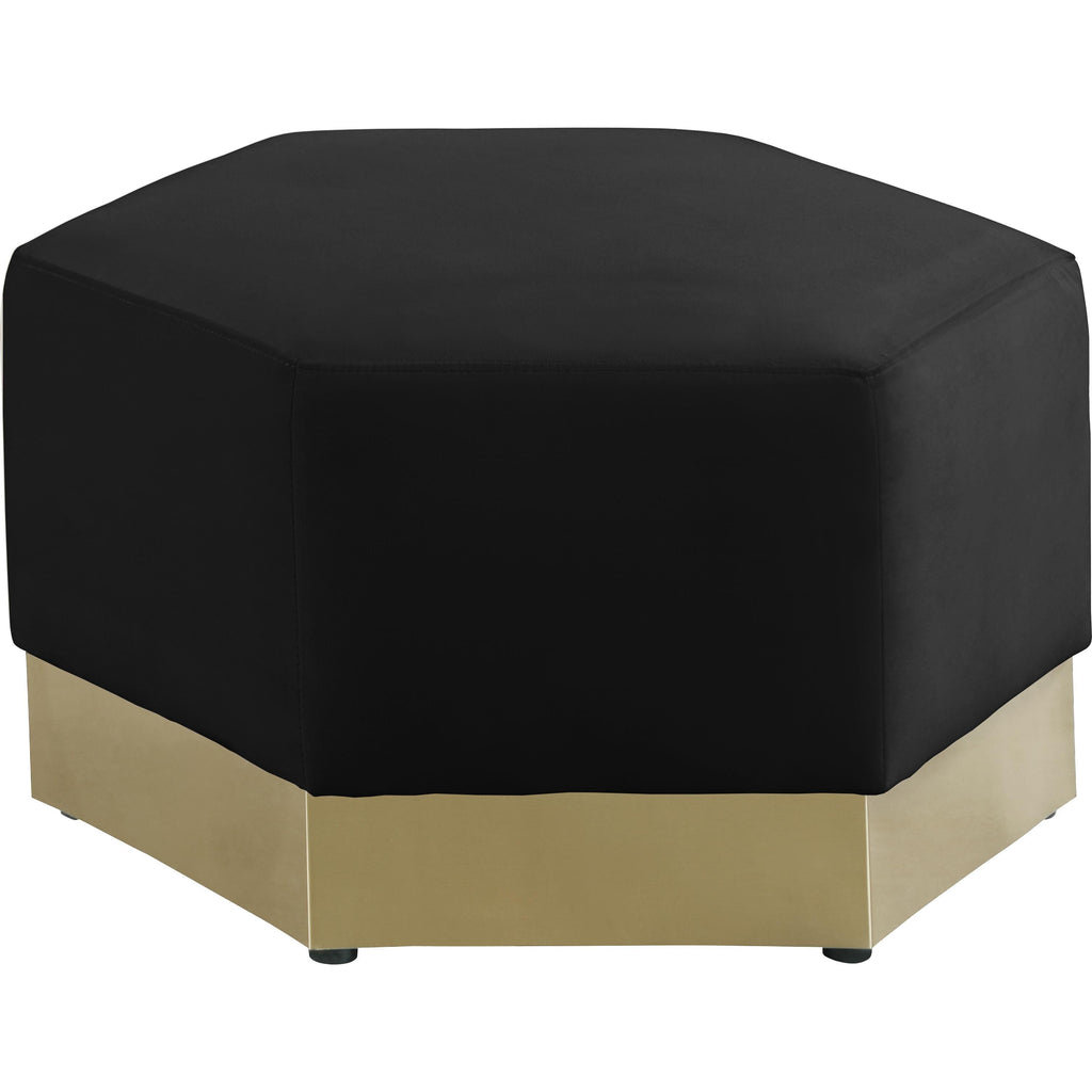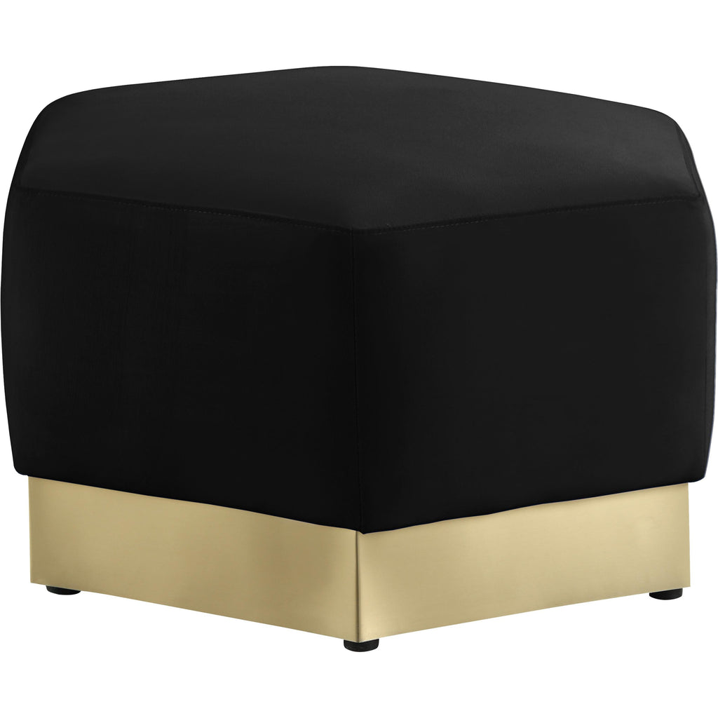 Revamp your living room, den or great room with this Marquis velvet ottoman. This handsome piece features a bold contemporary look that's well at home in most modern decor themes. A well-padded top ensures total comfort for your legs while you relax. Upholstered in soft black velvet, this piece fits in nicely with nearly any other colors in the room, and the brushed gold stainless steel base ensures its up-to-the-minute look.