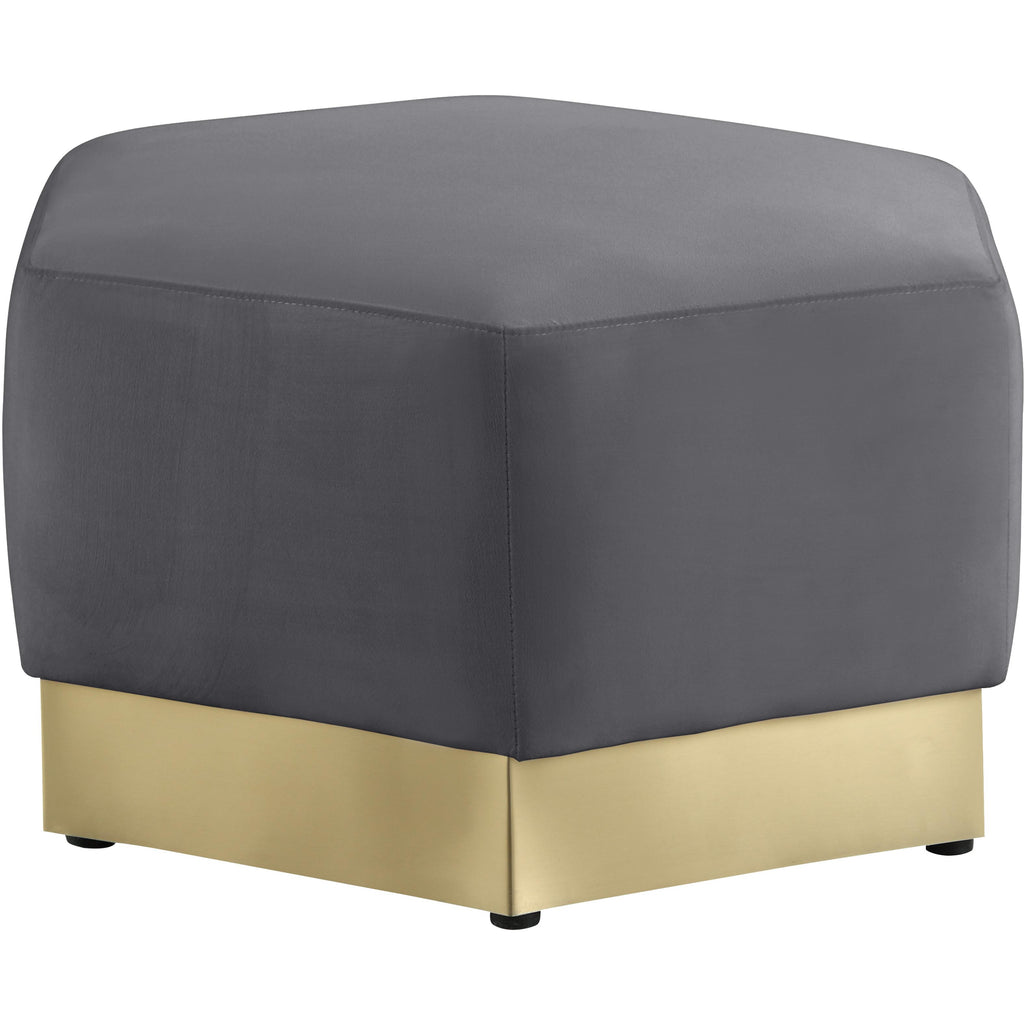 Revamp your living room, den or great room with this Marquis velvet ottoman. This handsome piece features a bold contemporary look that's well at home in most modern decor themes. A well-padded top ensures total comfort for your legs while you relax. Upholstered in soft grey velvet, this piece fits in nicely with nearly any other colors in the room, and the brushed gold stainless steel base ensures its up-to-the-minute look.