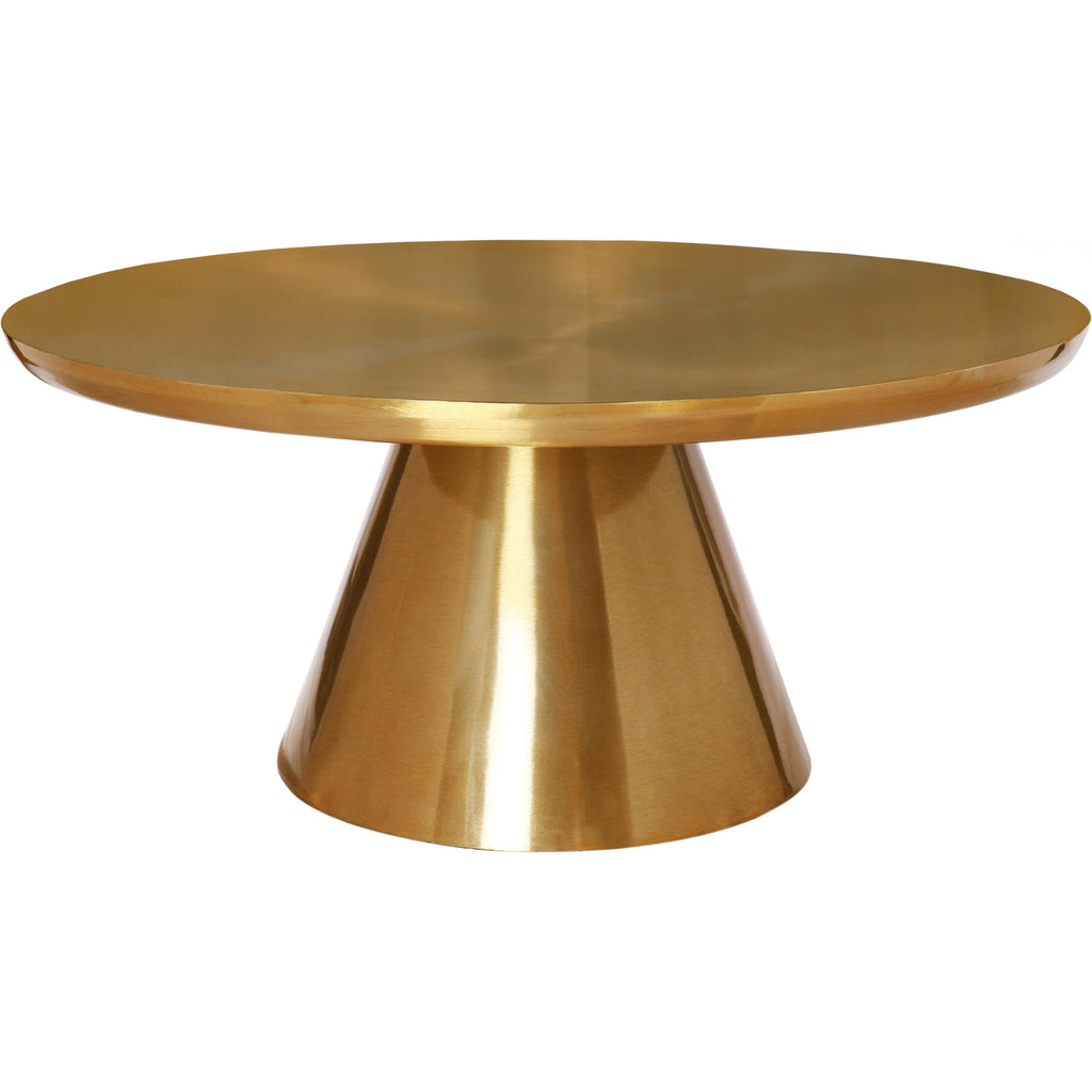 Bring your living space to life with this bold Martini Brushed Gold Coffee table from Meridian Furniture. Featuring a round brushed gold metal table top and matching base, this contemporary table is the perfect complement to any gold-themed furniture or home decor. Its round shape makes the table versatile, so it can be used in virtually any room in your house, including the living room, kitchen, dining room, bedroom, family room, or den.