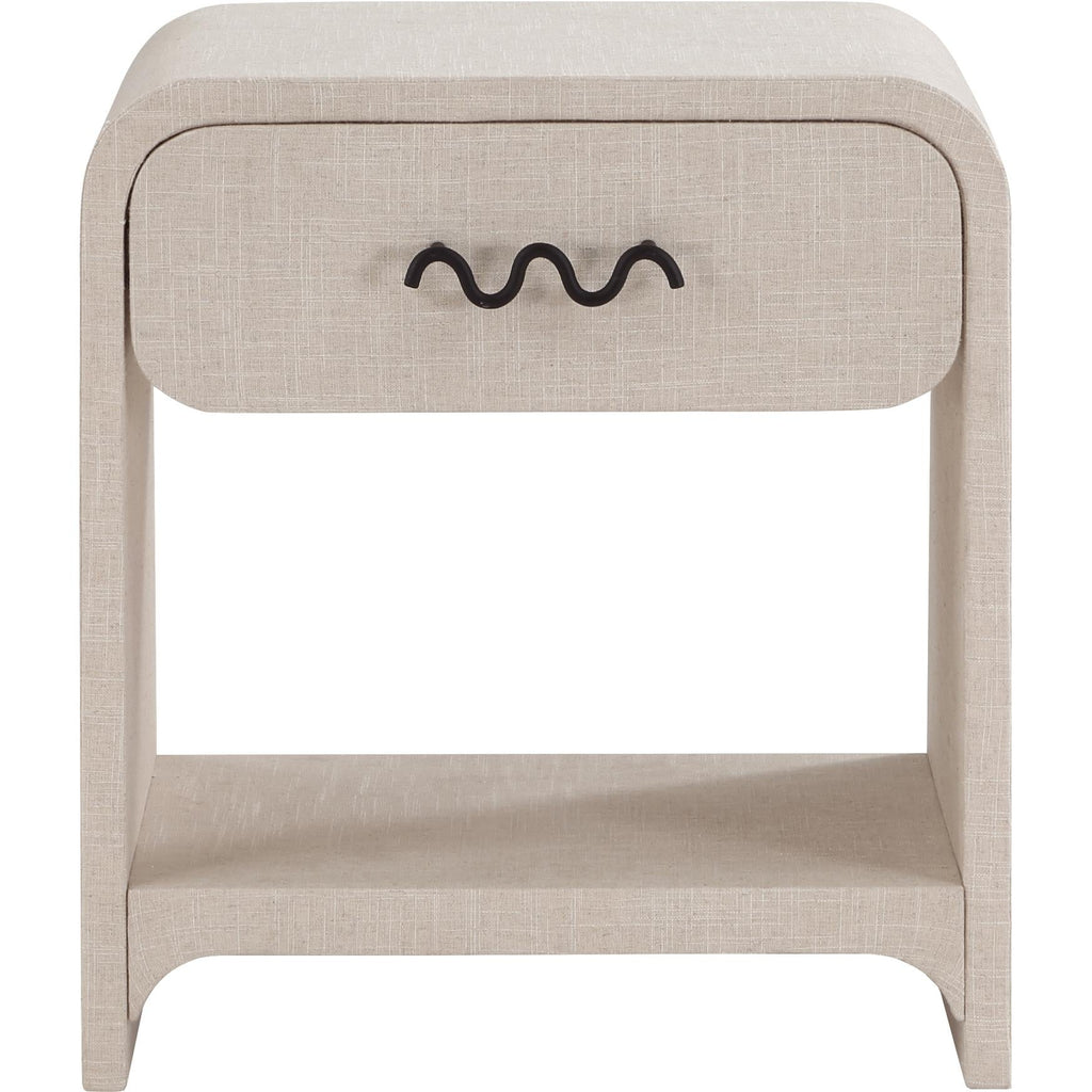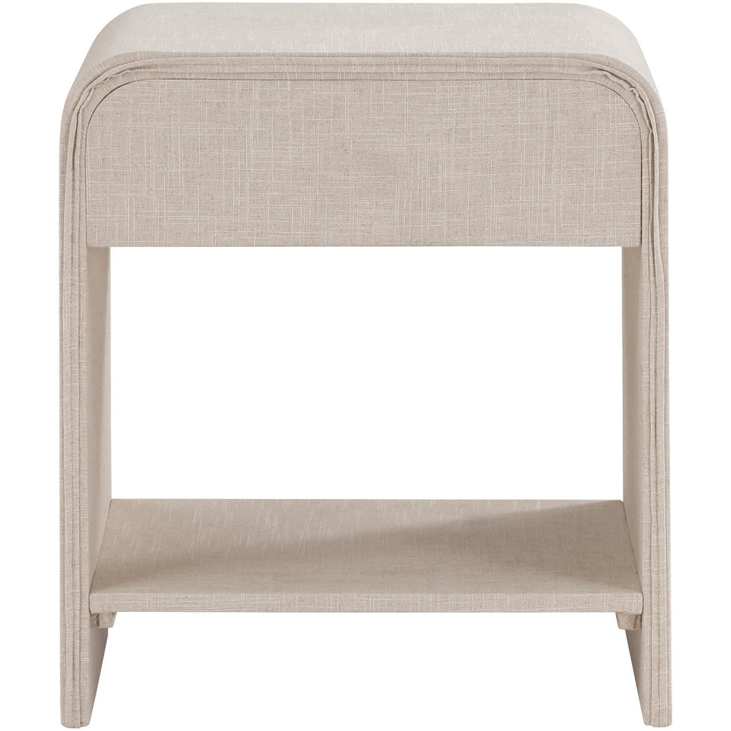 Enhance the aesthetic allure of any room in your home with the Medley Cream Night Stand / Side Table. Its sleek frame is elegantly enveloped in a cream-colored linen texture, lending a touch of sophistication to your space. The nightstand also incorporates a distinctive matte black handle, providing a stylish contrast that adds a touch of character to the design.