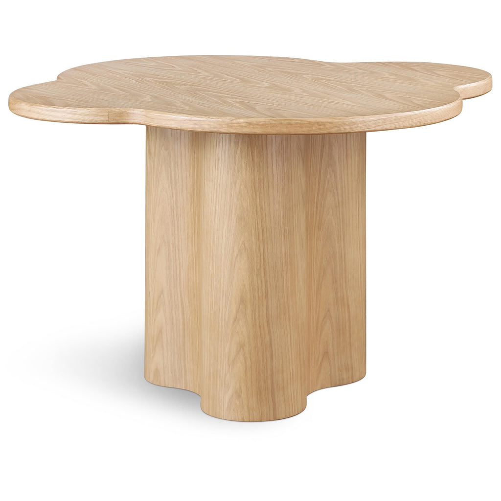 Bring a bold new look to your space with this Mesa Black Dining Table. Crafted with ash veneer and featuring a captivating natural finish, this table exudes elegance and sophistication. The unique clover-shaped table top is not only visually striking but also adds an intriguing element to your decor. With its bold design and sleek construction, this dining table is a perfect addition to your modern home.