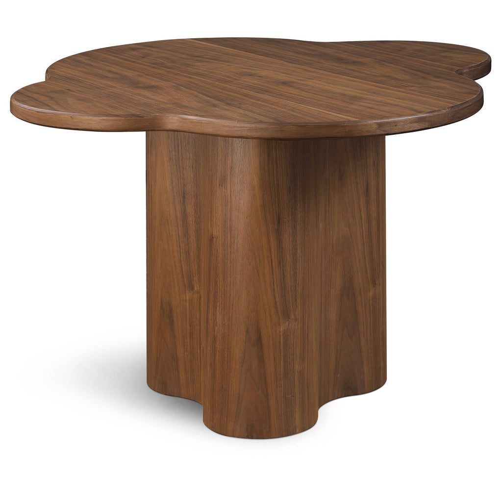 Bring a bold new look to your space with this Mesa Black Dining Table. Crafted with ash veneer and featuring a captivating walnut finish, this table exudes elegance and sophistication. The unique clover-shaped table top is not only visually striking but also adds an intriguing element to your decor. With its bold design and sleek construction, this dining table is a perfect addition to your modern home.