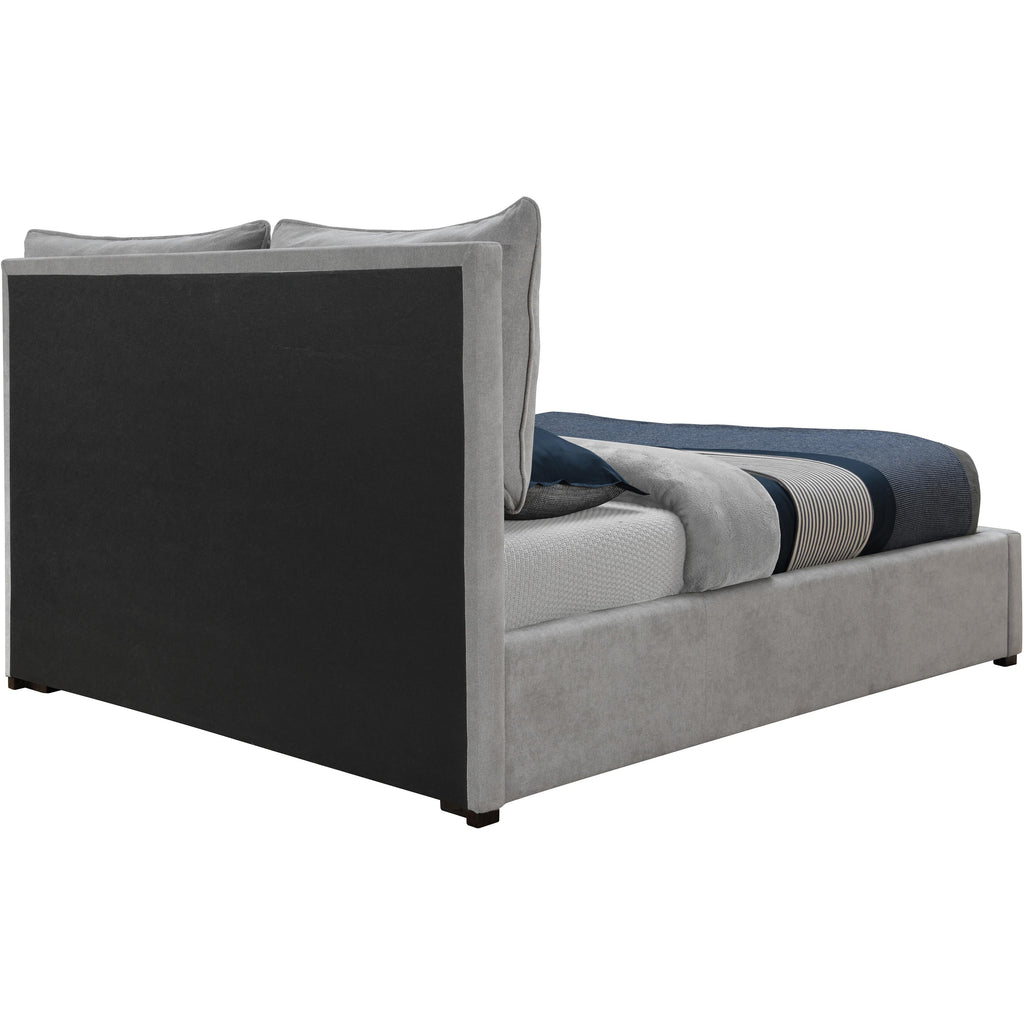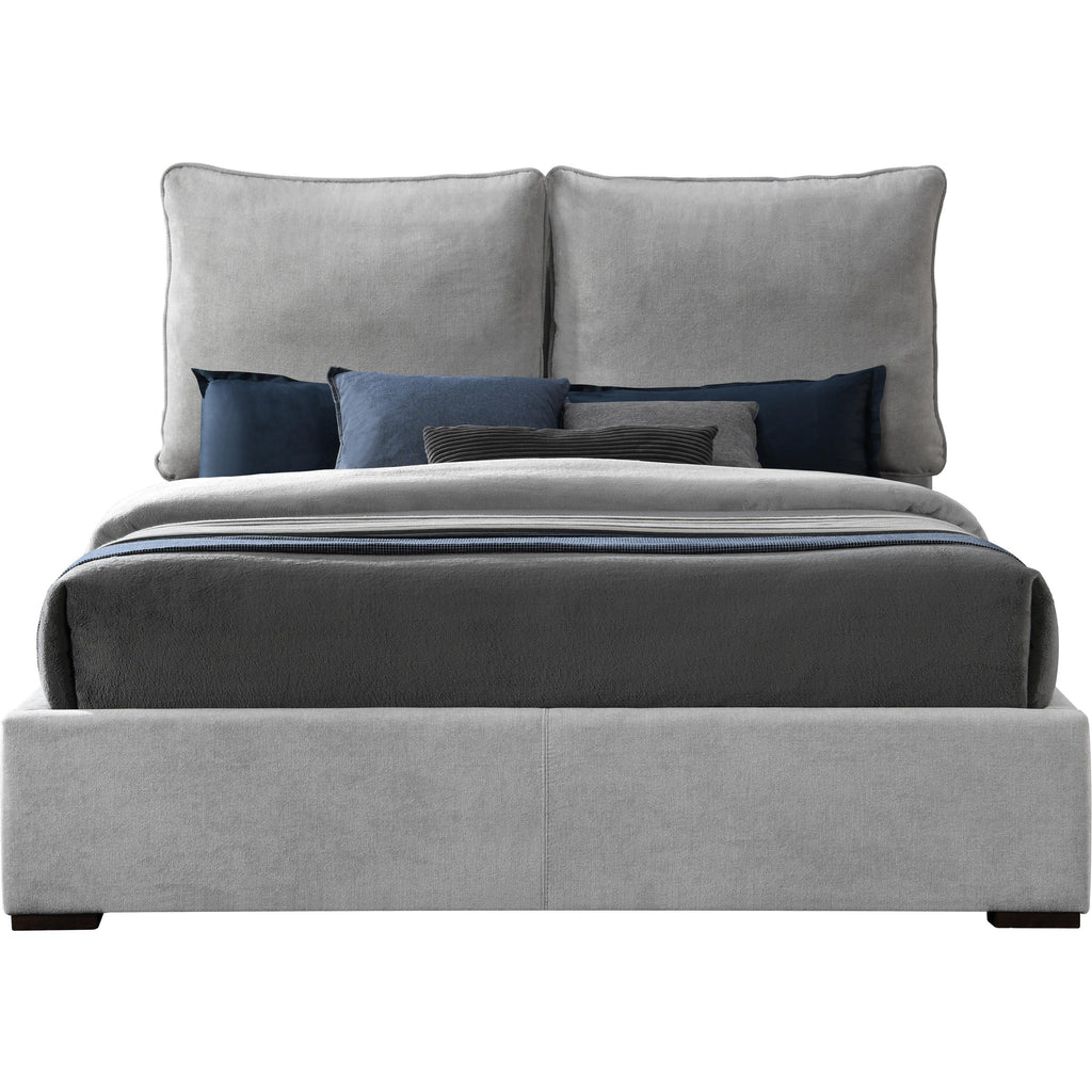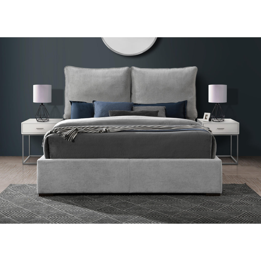 Get comfortable in the gorgeous Misha grey upholstered queen size bed. The tall, upholstered headboard is decorated with deep channel tufting in concentric squares, and the side rails and footboard are all upholstered as well. You won't need to purchase a box spring for this bed, because a complete set of slats is included.