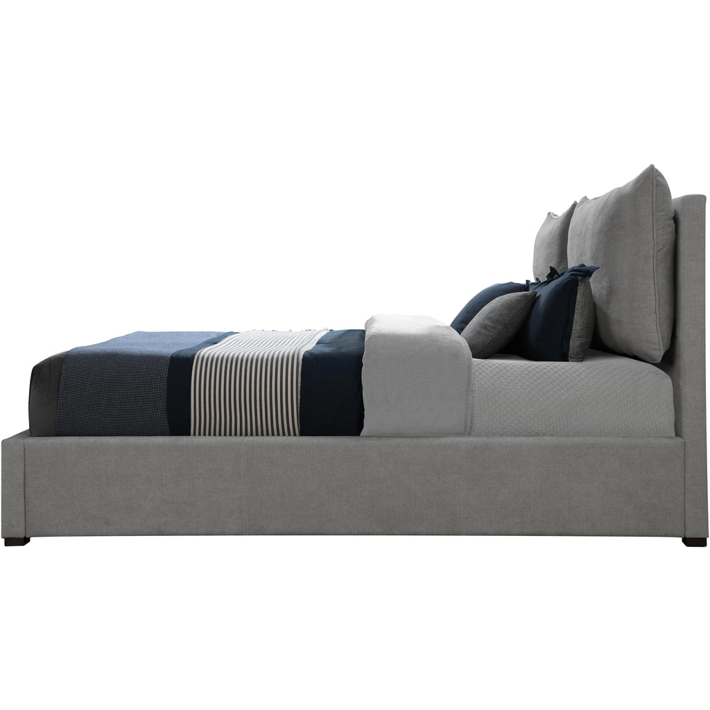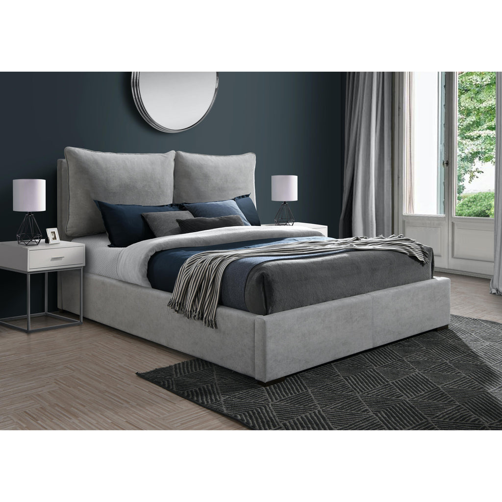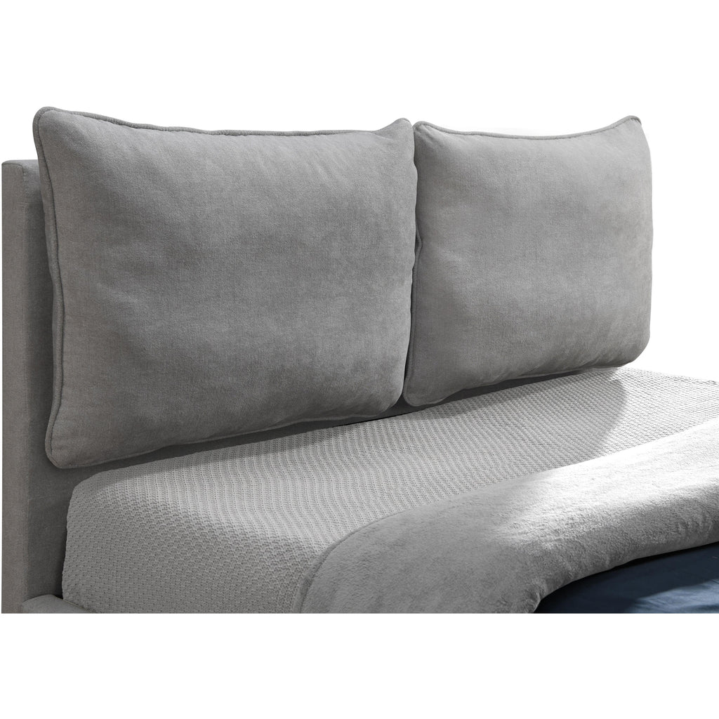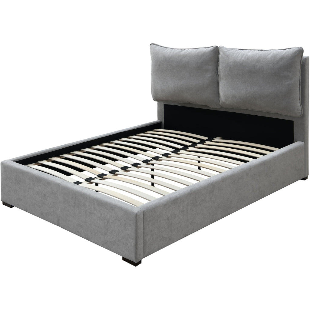 Get comfortable in the gorgeous Misha grey upholstered queen size bed. The tall, upholstered headboard is decorated with deep channel tufting in concentric squares, and the side rails and footboard are all upholstered as well. You won't need to purchase a box spring for this bed, because a complete set of slats is included.