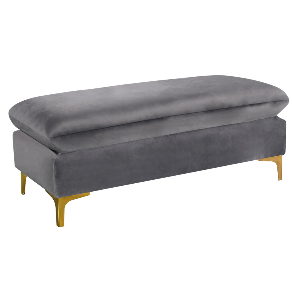 Prop your feet and legs up like a boss with this Naomi Grey Velvet Ottoman as the newest addition to your home decor plans. This elegant ottoman is covered in rich velvet to provide a neutral style boost to your room while pampering your feet in comfort at day's end. Customize its look with your choice of gold or chrome legs; both are included so that you can give this plush stool a personalized spin. Place it at the foot of the bed for a regal look, add it to a foyer for a spot to rest while putting on shoes, or bring it into the living room for an extra seat as needed.