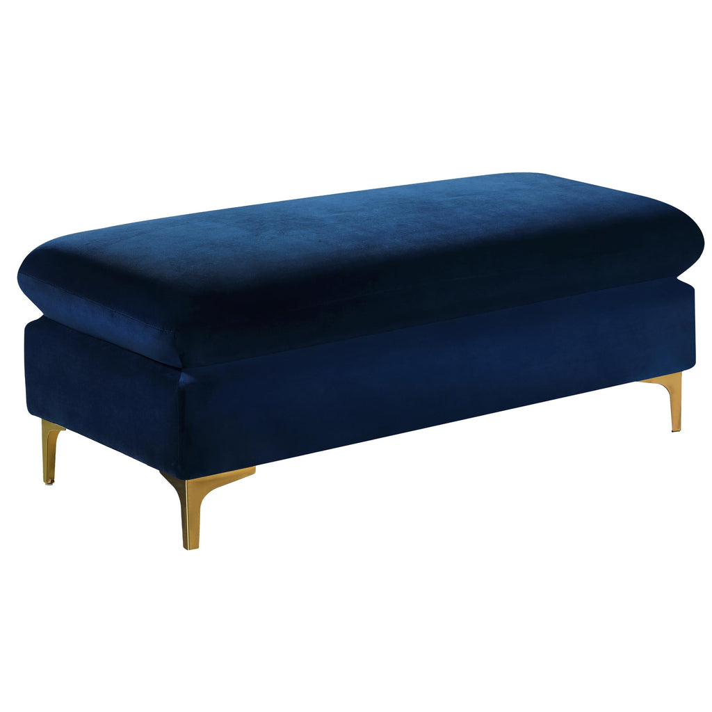 Prop your feet and legs up like a boss with this Naomi Navy Velvet Ottoman as the newest addition to your home decor plans. This elegant ottoman is covered in rich velvet to provide a neutral style boost to your room while pampering your feet in comfort at day's end. Customize its look with your choice of gold or chrome legs; both are included so that you can give this plush stool a personalized spin. Place it at the foot of the bed for a regal look, add it to a foyer for a spot to rest while putting on shoes, or bring it into the living room for an extra seat as needed.