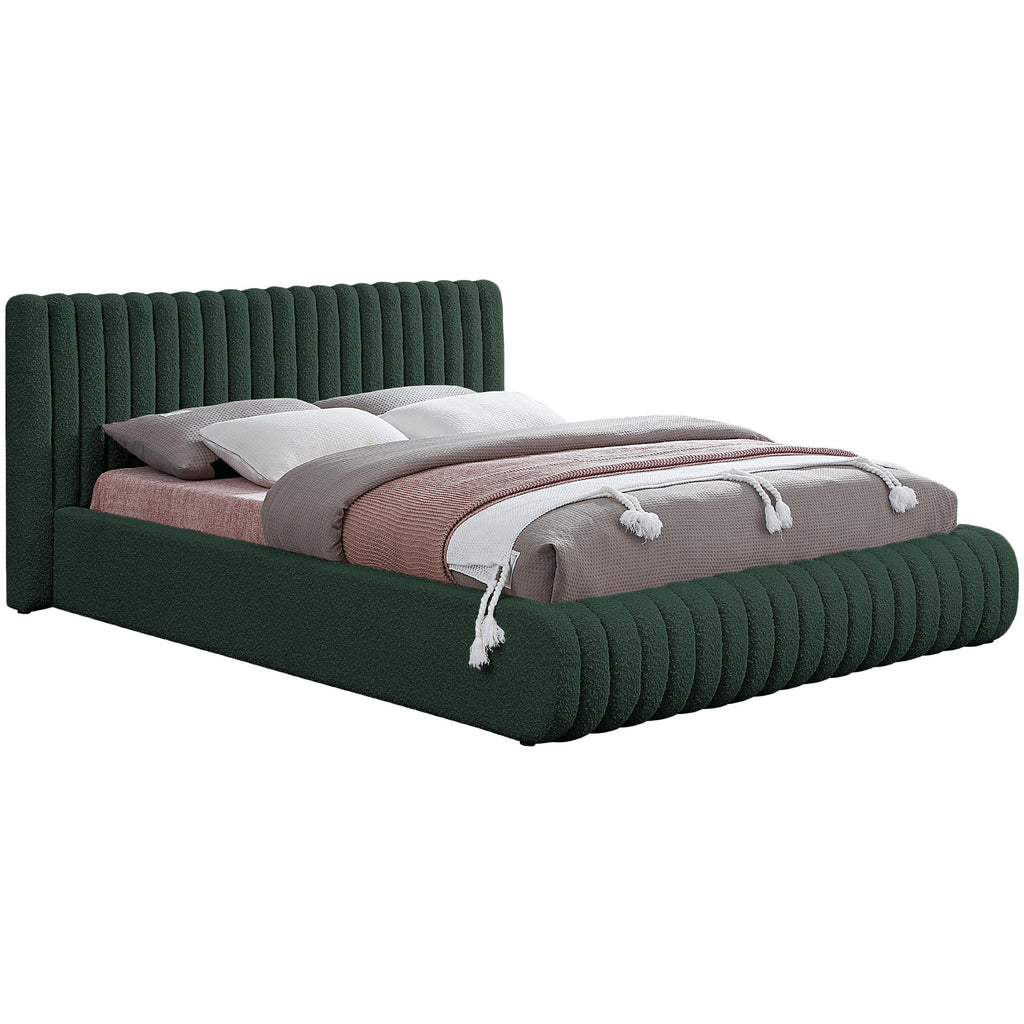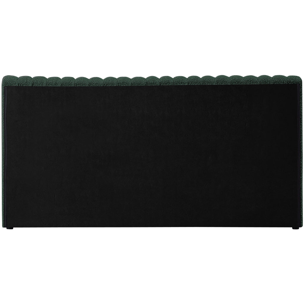 Reimagine your bedroom space when you make this Nash boucle fabric bed your own. This lovely bed features a heavily tufted headboard and footboard for a dimensional look that's both modern and elegant at the same time. The bed is upholstered all over with soft rich green boucle fabric that is welcoming to the touch and super soft against your back as you sit in bed to read or watch TV.