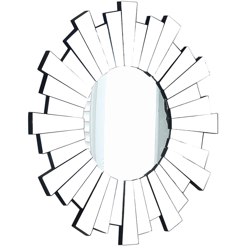 Make this Nexus mirror a reflection of your modern taste. This striking mirror features a new take on the classic sunburst design with various geometric shapes coming together to form its frame. Each piece that forms the frame is also mirrored, so the result is a stunning presentation that is contemporary and bold. Hang this mirror on any focal wall to attract maximum attention, or pair it with the coordinating Nexus console table for added oomph.