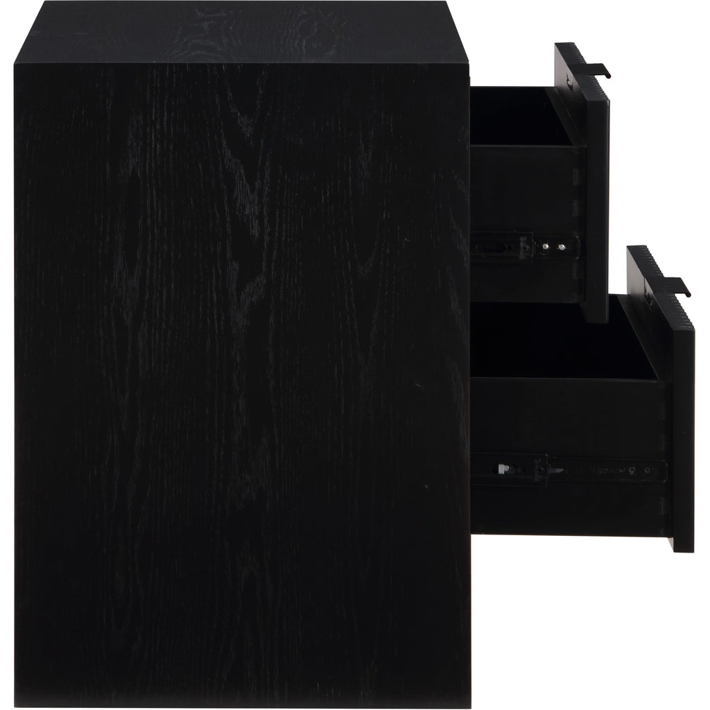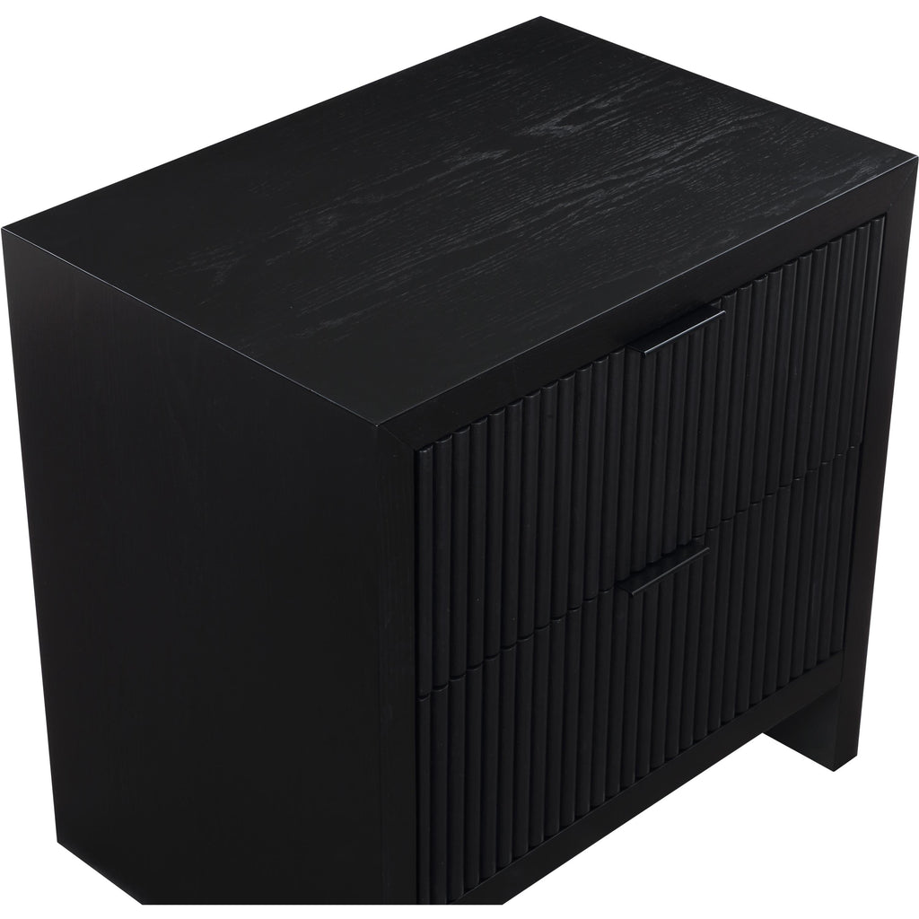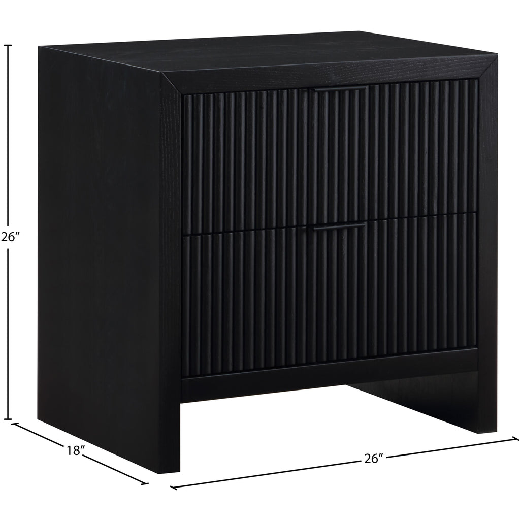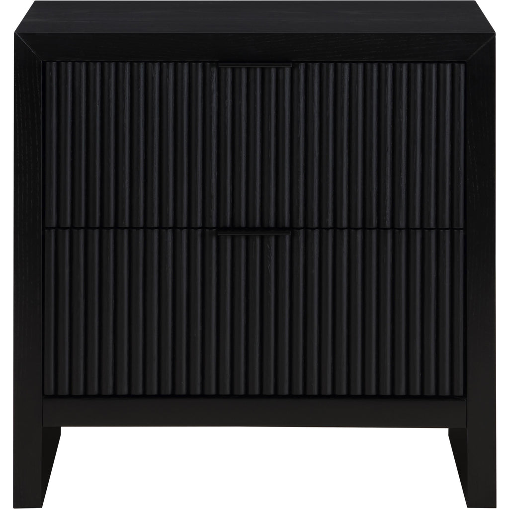 The exquisite Fairfax Night Stand is a perfect blend of style and functionality. The meticulously crafted fluted drawer fronts, with their subtle grooves, lend a touch of sophistication to the piece. The matte black metal handles are not only visually appealing but also easy to grip, making it effortless to open and close the drawers. The night stand is crafted from solid wood, providing a durable and sturdy construction. Its sleek black finish enhances its modern and contemporary appeal, making it an exceptional addition to any living space.
