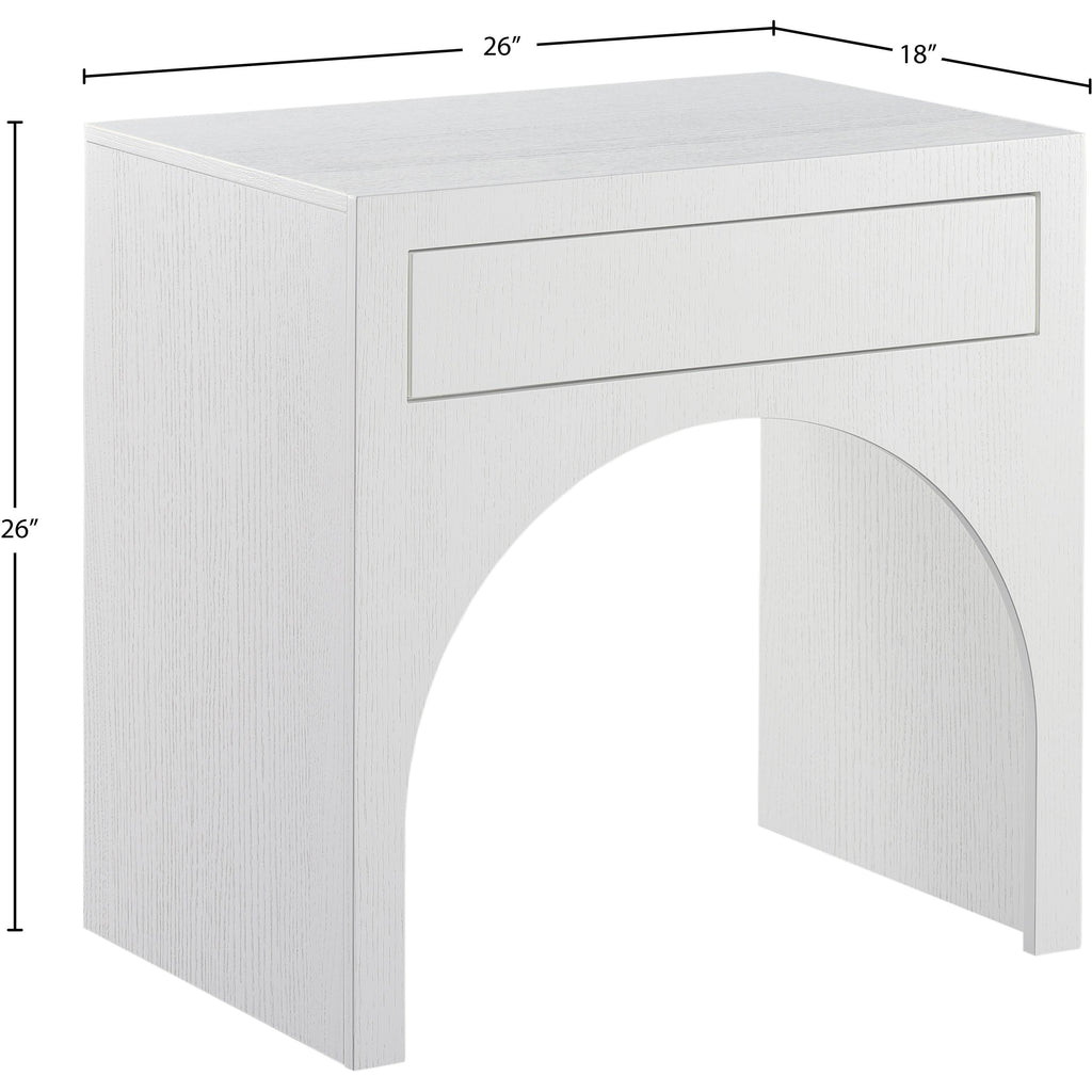 Transform your home with the stunning August White Nightstand. This piece boasts a simple, yet elegant design. Constructed with oak wood veneer, the nightstand features a rich whiute finish that adds a touch of sophistication to any room. The push-to-open drawer mechanism makes it easy to access your belongings without any hassle. Add a stylish and comfortable touch to your bedroom with this beautiful nightstand.