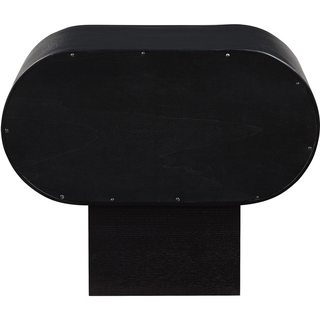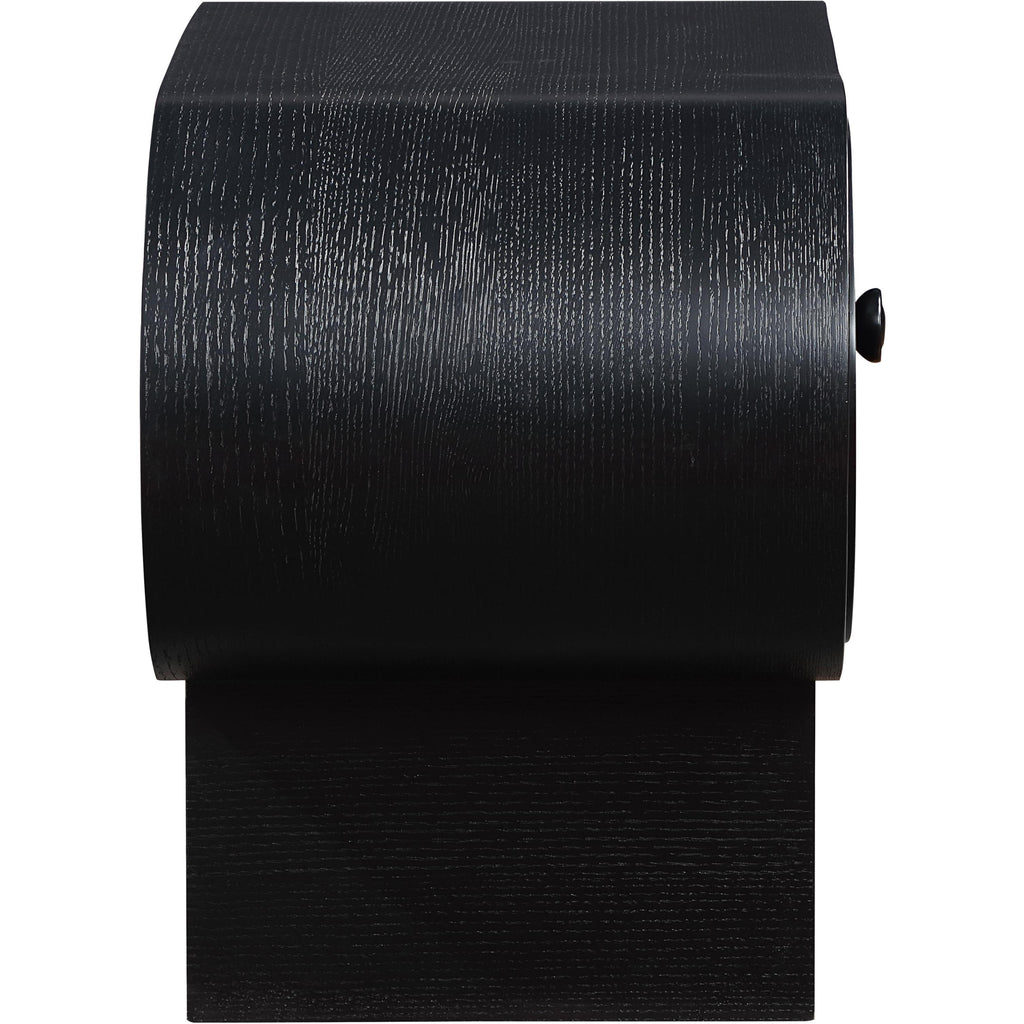 Slumber well knowing the things you need most at night are tucked out of sight and within easy reach with this Harlow black nightstand. Its rich black finish and oak veneer, crafted from a mix of solid wood and MDF, embody art deco elegance. Featuring natural wood grain variation, each piece is uniquely beautiful. A single drawer with an attractive pull offers discreet storage, blending practicality with timeless design. Enhance your bedroom with this sophisticated accent that combines function with exquisite craftsmanship.