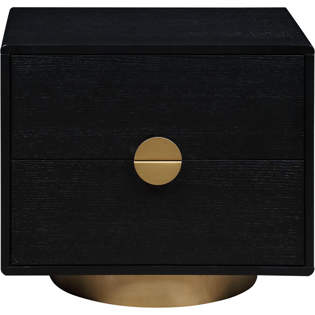 Looking for a stylish and functional piece of furniture to spruce up your living space? Look no further than the Wade Night Stand / Side Table! With its sleek black oak veneered finish, this piece is sure to make a statement in any room. But what really sets it apart is the brushed brass metal base and handle, which add a touch of glamour and elegance to the overall design. Whether you're using it as a nightstand or a side table, this piece is sure to impress guests and enhance the look and feel of your home.