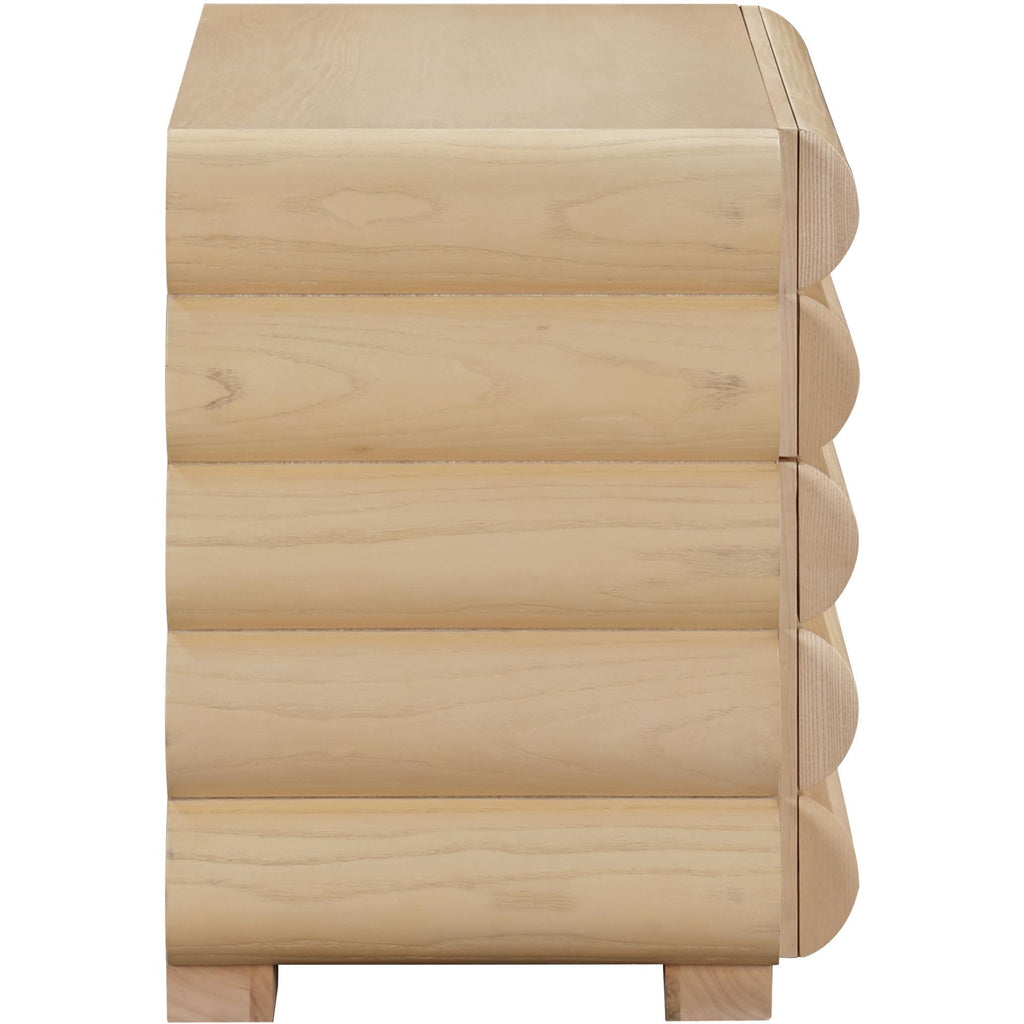 Add a touch of sophistication and allure to your living space with the exquisite Maverick Black Night Stand / Side Table. With its lustrous rich natural ash wood veneered finish, this piece exudes a timeless elegance that is sure to captivate the hearts of all who behold it. The table's thick fluted shape and seamless drawers further enhance its appeal, making it a stunning addition to any room in your home. Whether placed in your bedroom, living room, or study, this exquisite piece is sure to impress your family and friends with its understated charm and refined aesthetics.