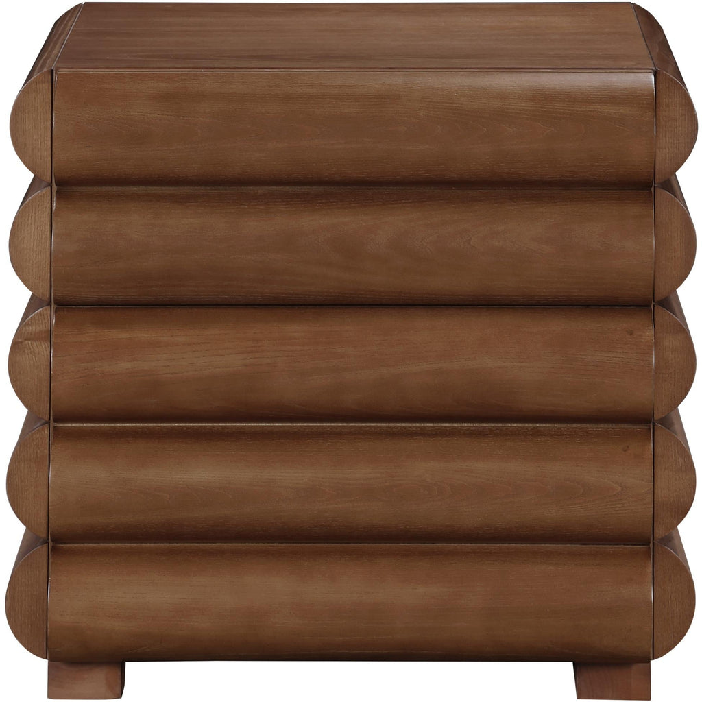 Add a touch of sophistication and allure to your living space with the exquisite Maverick Black Night Stand / Side Table. With its lustrous rich walnut ash wood veneered finish, this piece exudes a timeless elegance that is sure to captivate the hearts of all who behold it. The table's thick fluted shape and seamless drawers further enhance its appeal, making it a stunning addition to any room in your home. Whether placed in your bedroom, living room, or study, this exquisite piece is sure to impress your family and friends with its understated charm and refined aesthetics.