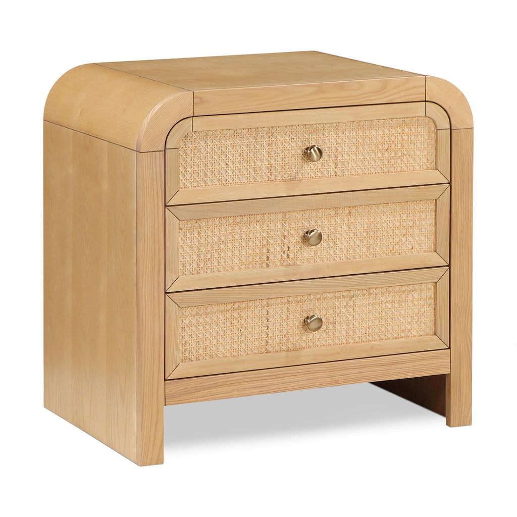 Introduce a touch of elegance and comfort to your bedroom by incorporating the Siena Night Stand into your decor. The natural cane drawers and stunning natural ash veneer finish create a striking contrast that exudes charm and sophistication. The nightstand is constructed from ash wood, ensuring both durability and longevity. Its sleek and modern design makes it an ideal addition to any contemporary bedroom aesthetic. Experience the perfect blend of functionality and style with the Siena Natural Night Stand.