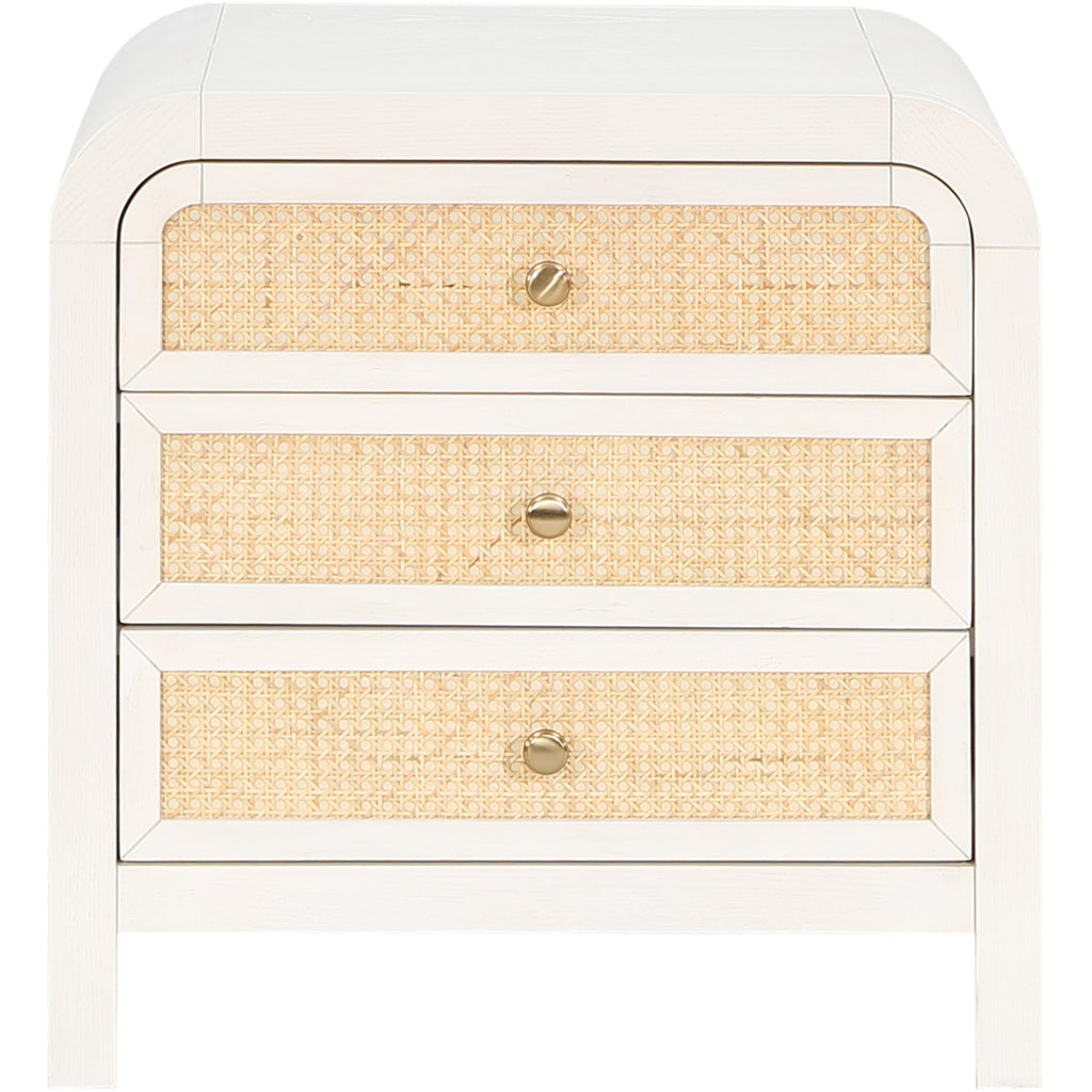 Introduce a touch of elegance and comfort to your bedroom by incorporating the Siena Night Stand into your decor. The natural cane drawers and stunning off-white ash veneer finish create a striking contrast that exudes charm and sophistication. The nightstand is constructed from ash wood, ensuring both durability and longevity. Its sleek and modern design makes it an ideal addition to any contemporary bedroom aesthetic. Experience the perfect blend of functionality and style with the Siena Off-White Night Stand.
