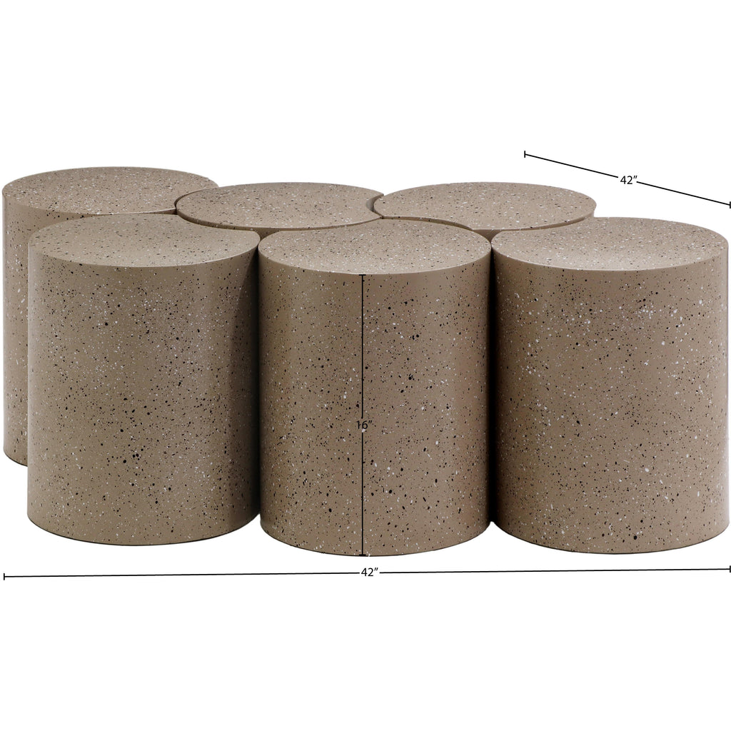 Beautify your room with this Dimple taupe coffee table. Crafted from taupe terrazo patterned iron metal, its modular shape allows you to connect as many as needed, offering versatility and style. With a contemporary nesting design, it adapts effortlessly to various spaces, whether used individually or in clusters. Perfect for adding both functionality and a modern aesthetic to your living area, this table promises to be a chic addition that enhances organization and visual appeal in any setting.