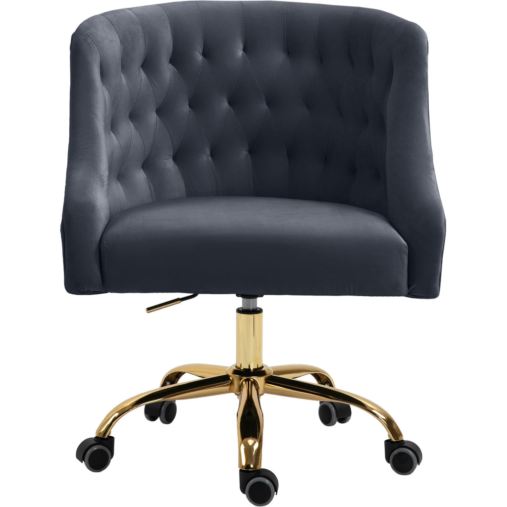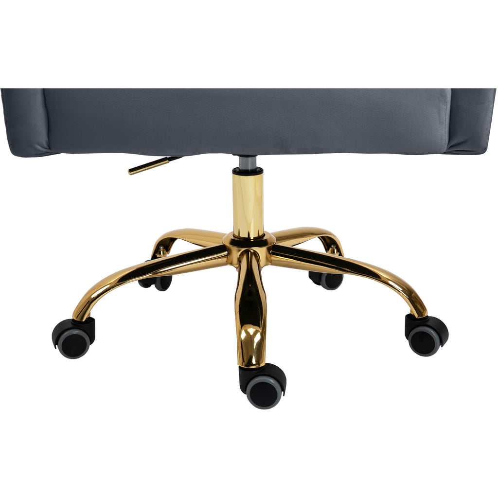 Stay cozy and comfortable at work while expressing your definitive modish tastes with this Arden Velvet Office Chair. This sumptuously appointed chair features soft grey velvet upholstery with svelte button tufting and a rich gold base, ensuring that it garners more than its fair share of oohs and aahs, no matter who's admiring it. This contemporary office chair swivels to allow for expanded functionality, and it's adjustable, so you can customize the chair's position to meet your sitting preferences.